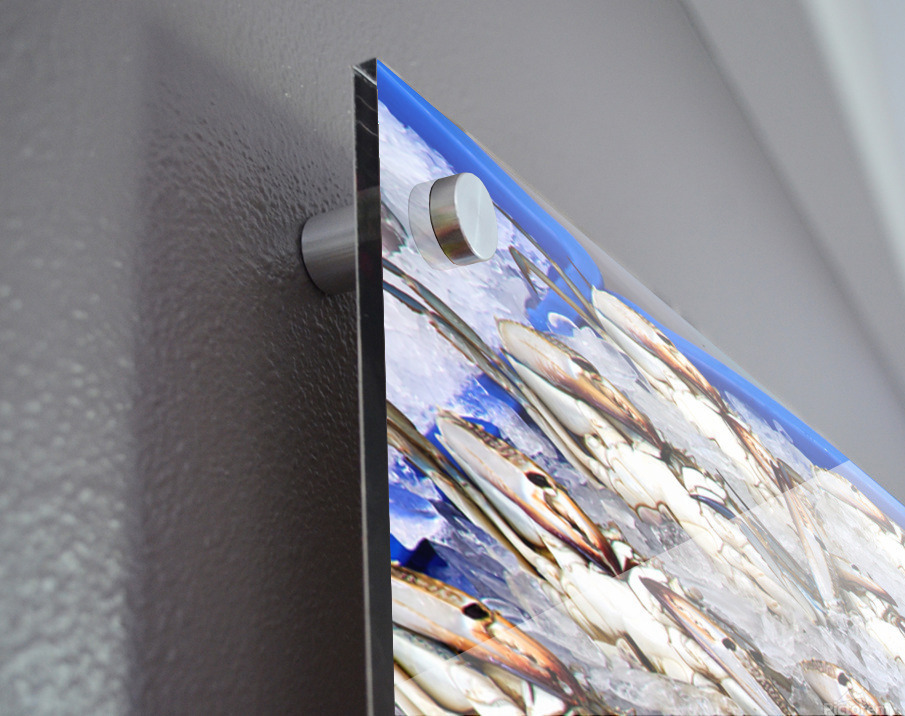 Printed to the edge - Ready to hang - provided with 4 premium polished aluminum stand off ( wall screws and mounting hardware provided )