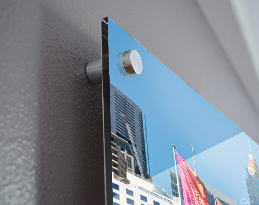 ABOUT THIS ARTWORK: COLORFUL FLAGS LINE BRIDGE IN DARLING HARBOUR SYDNEY ON A SUNNY