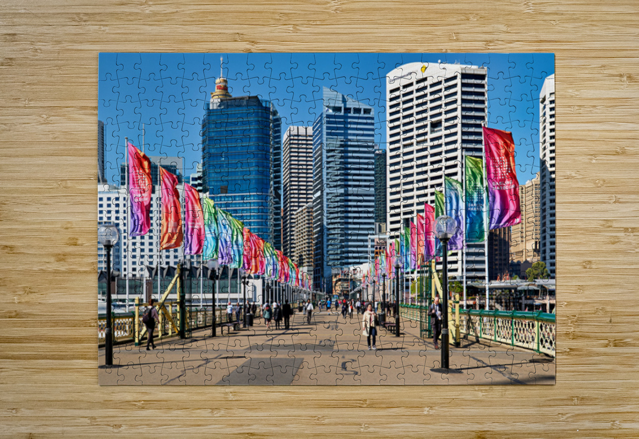 Colorful flags line bridge in Darling Harbour Sydney on a sunny  Marco Brivio Puzzle printing
