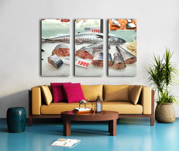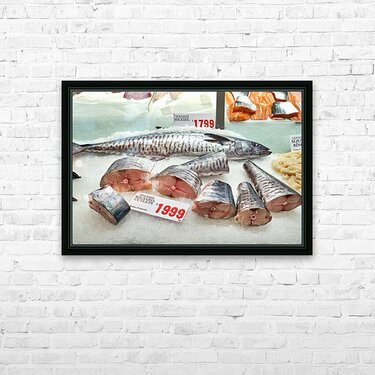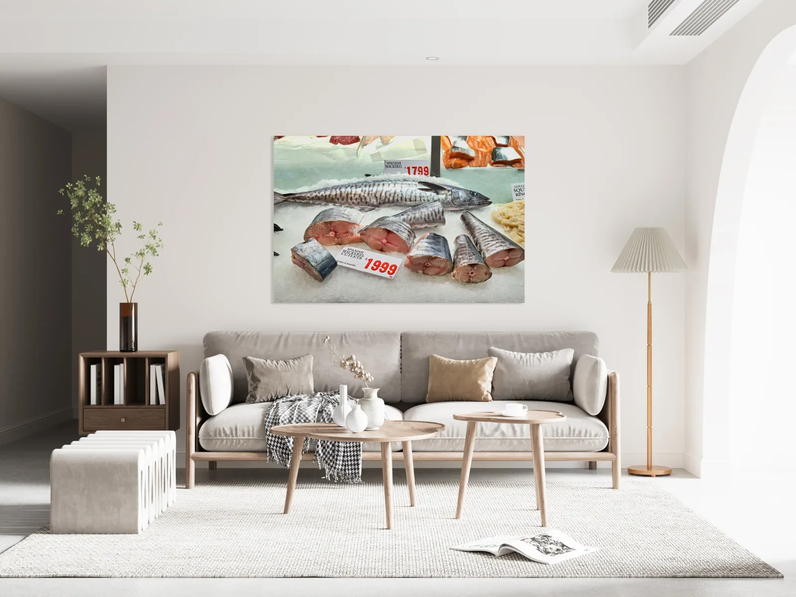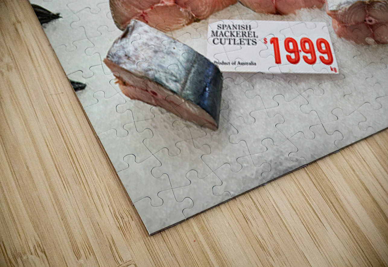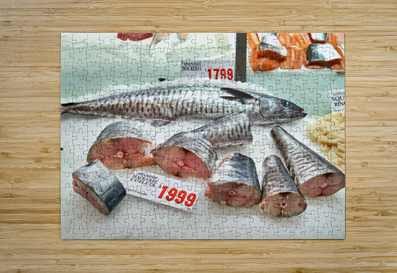 Spanish Mackerel cutlets are displayed on ice at a fish market in Australia. The fish is priced at $19.99 per kg.