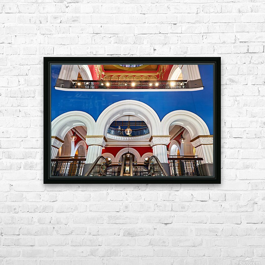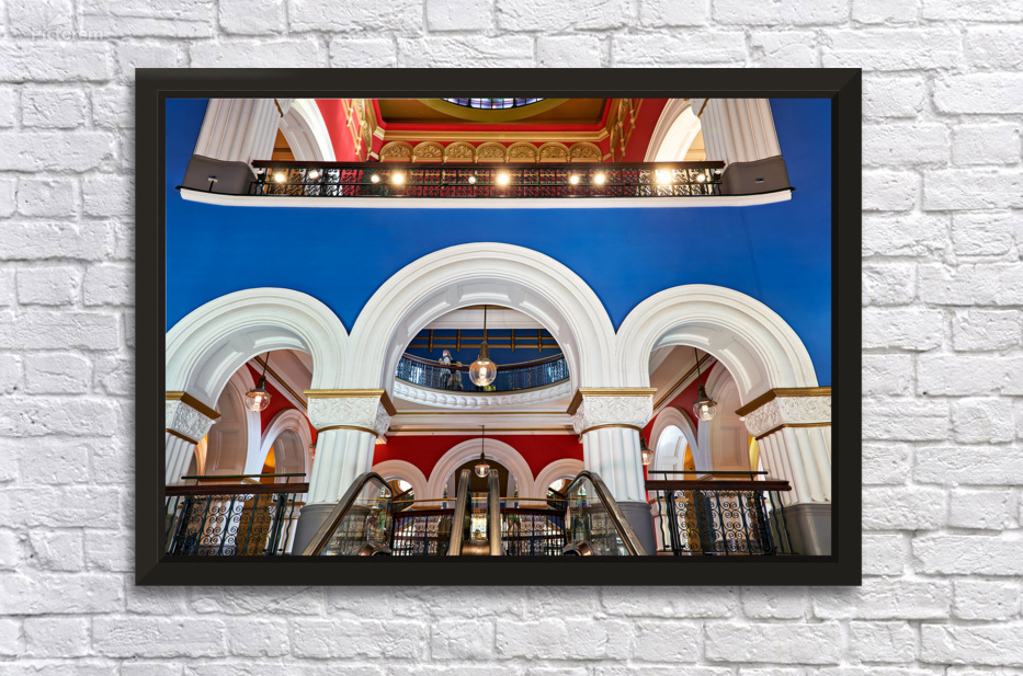 "Ornate interior of Queen Victoria Building in Sydney Australia" in a framed print.