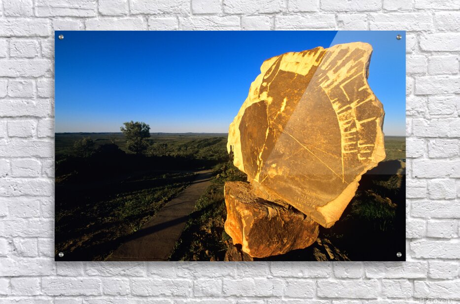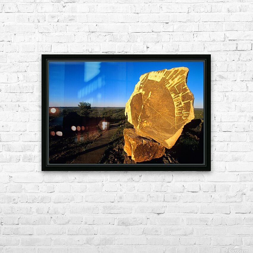 Carved stone monument in the Australian outback at sunset. Picture Frame Printing