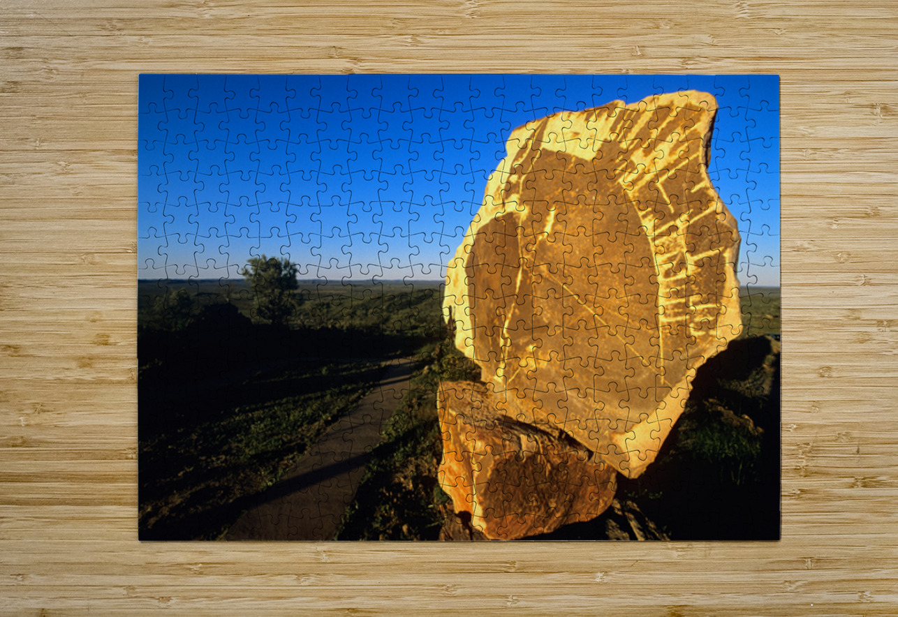 Carved stone monument in the Australian outback at sunset. Marco Brivio Puzzle printing
