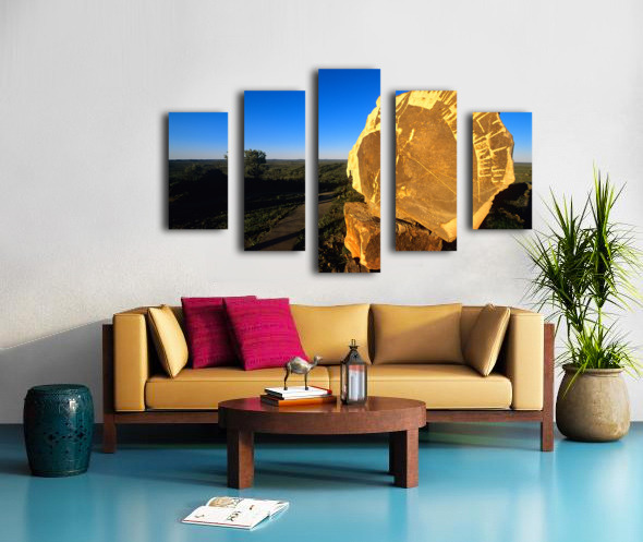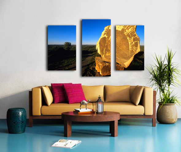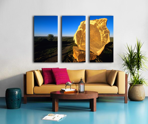 ABOUT THIS ARTWORK: CARVED STONE MONUMENT IN THE AUSTRALIAN OUTBACK AT SUNSET.
