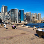 SYDNEY HARBOUR SKYLINE WITH PEOPLE ENJOYING THE WATERFRONT PROME