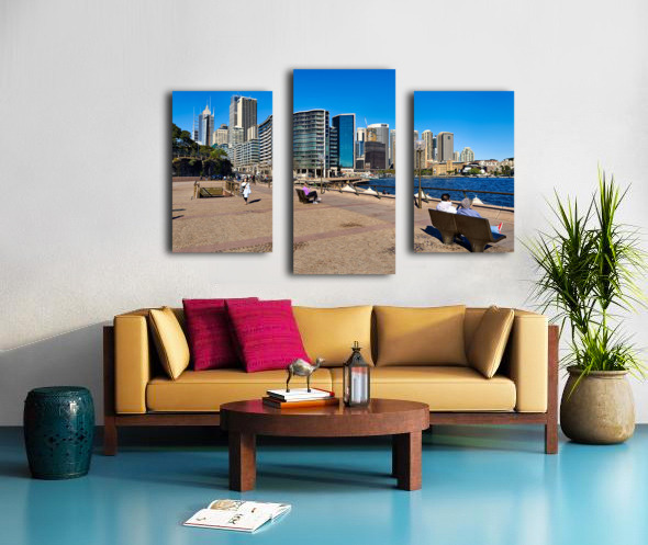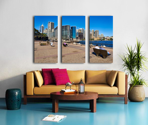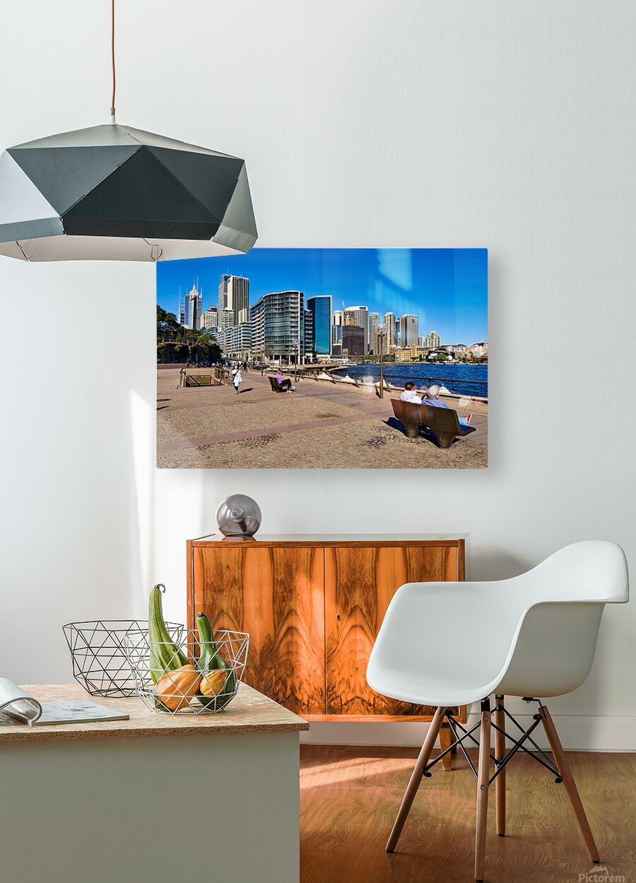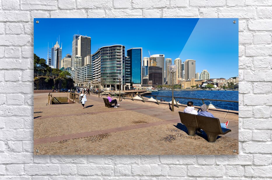 ABOUT THIS ARTWORK: SYDNEY HARBOUR SKYLINE WITH PEOPLE ENJOYING THE WATERFRONT PROME