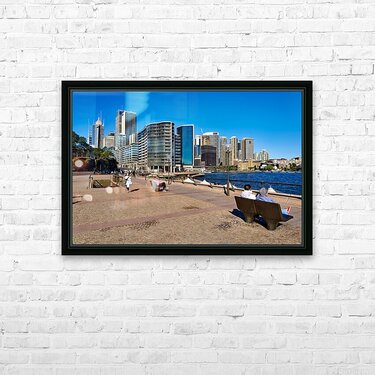 Sydney Harbour skyline with people enjoying the waterfront prome Frame print