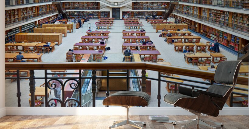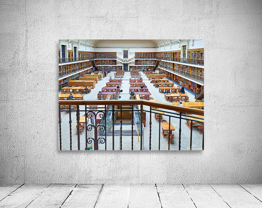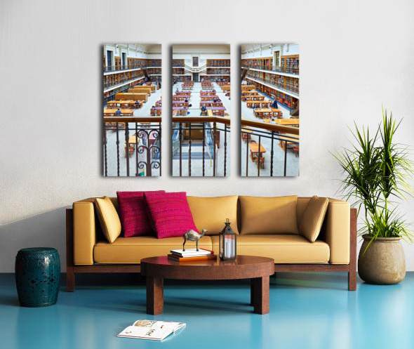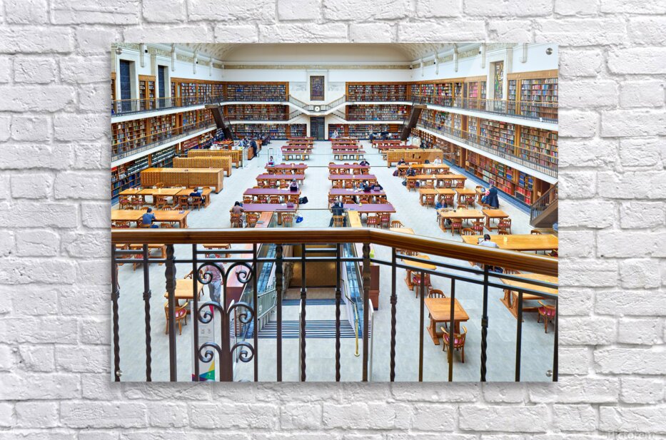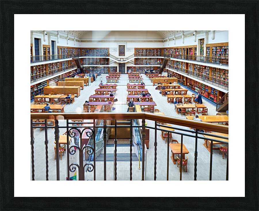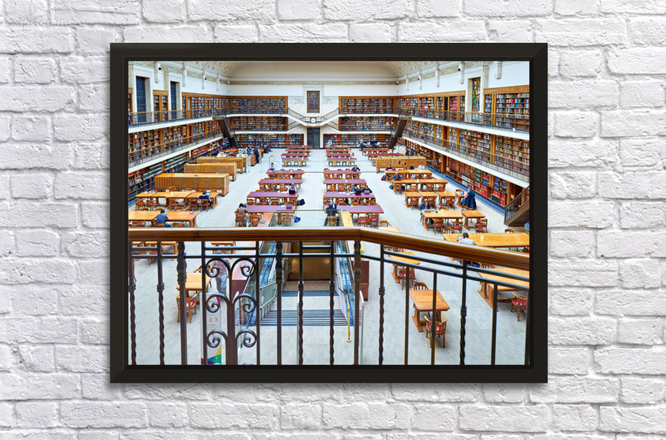 "Students study in library at Mitchell Library Sydney" in a framed print.