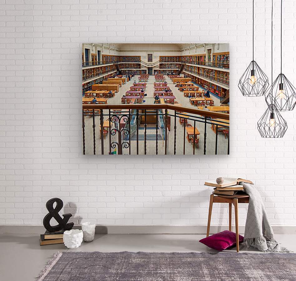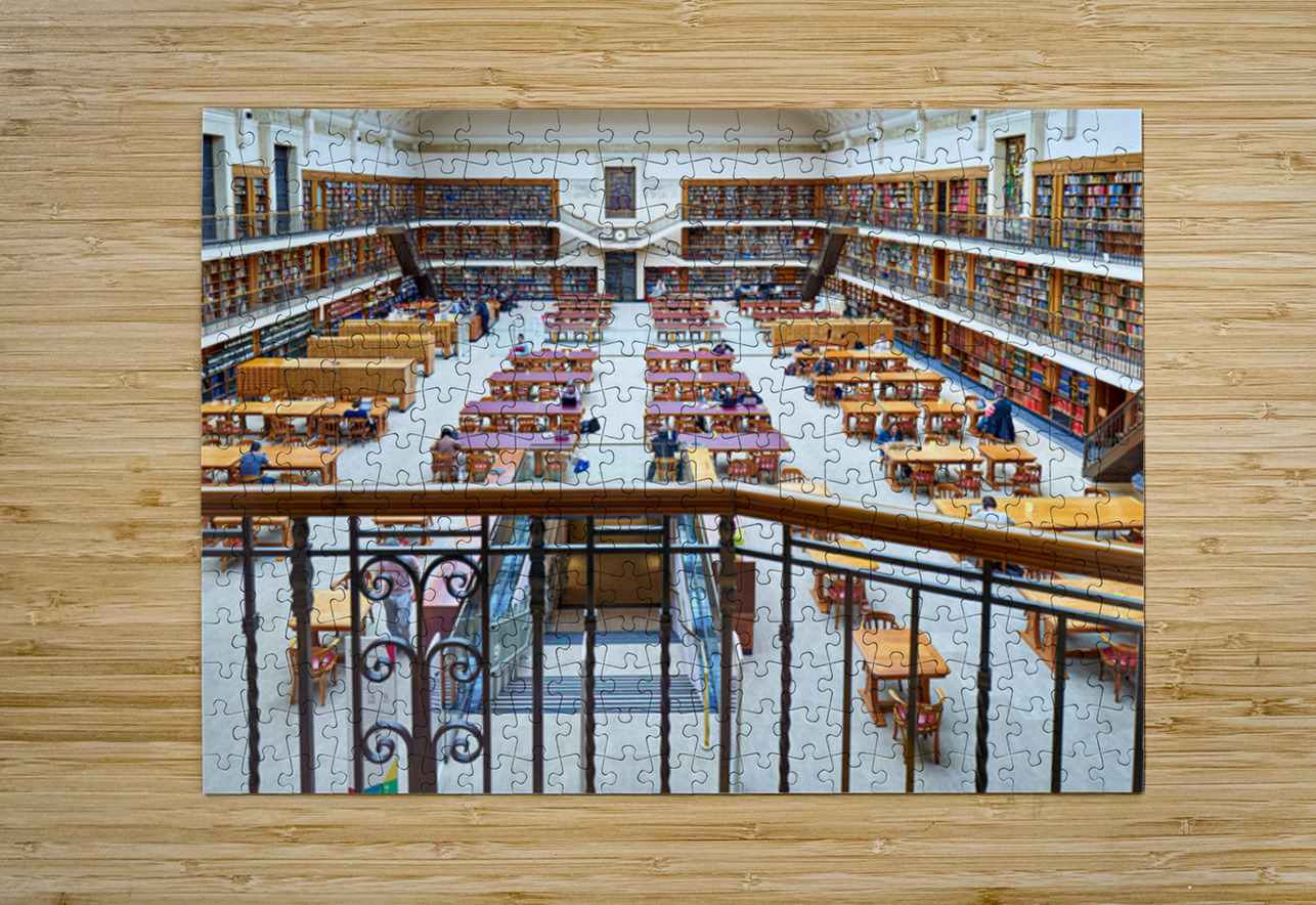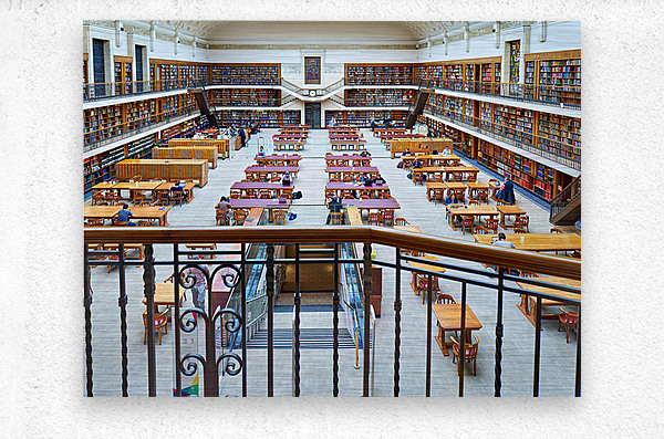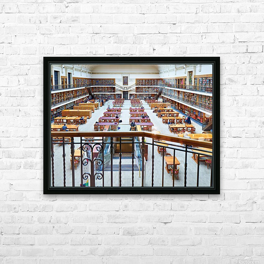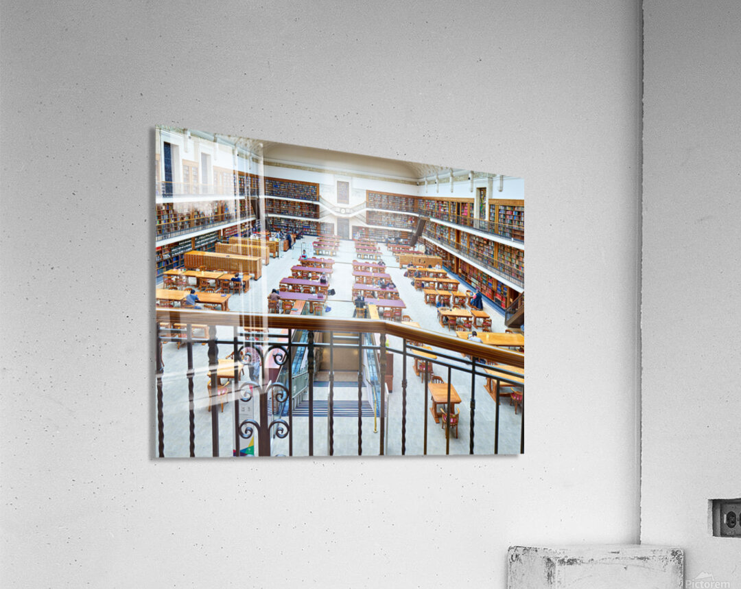 "Students study in library at Mitchell Library Sydney" in a framed print.