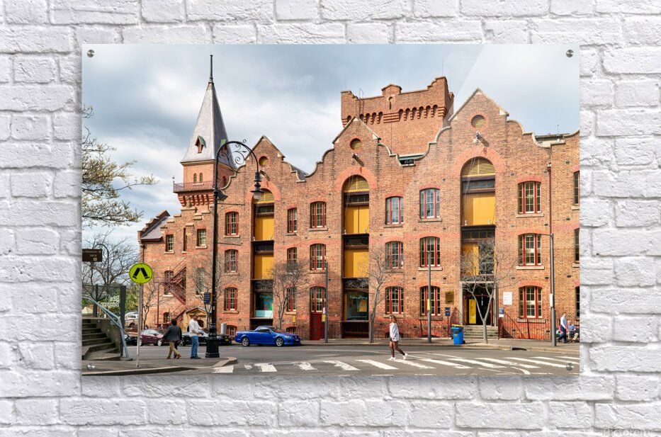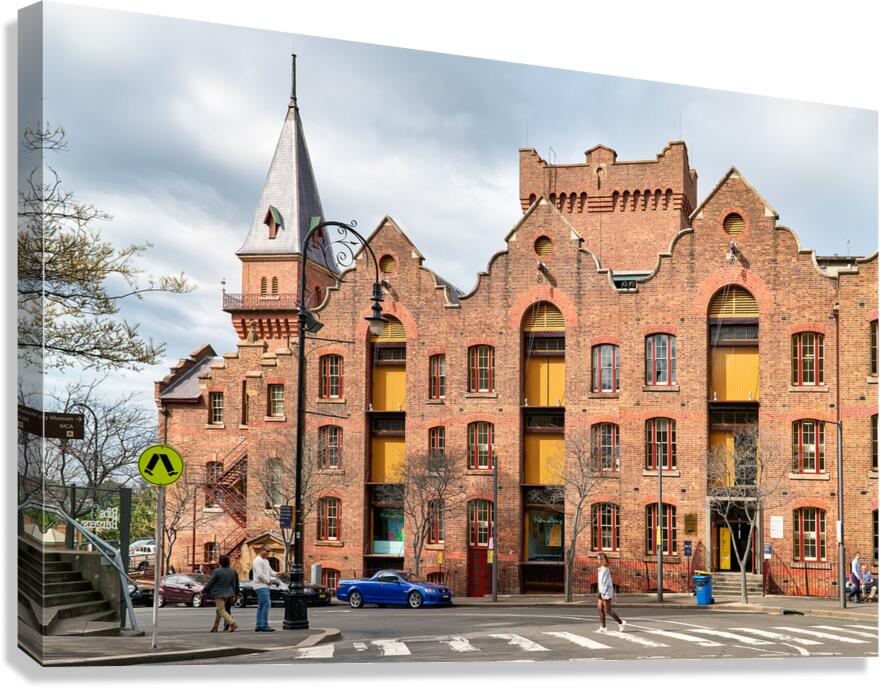 Sydney Australia - People cross the street in front of the historic Sydney Warehouse a building now housing the Kendall Gallery and MCA.