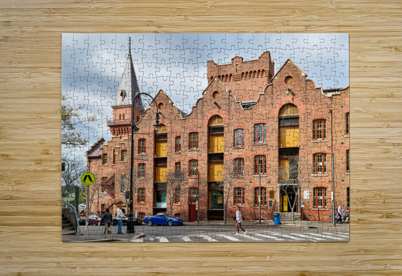 Historic brick building with a tower and people walking. Marco Brivio Puzzle printing