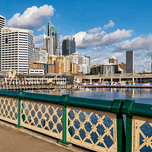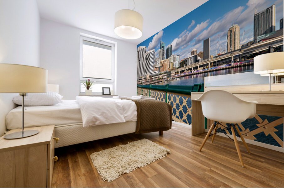 Sydney Australia - A view of Darling Harbour with the PwC building and other skyscrapers on a sunny day.