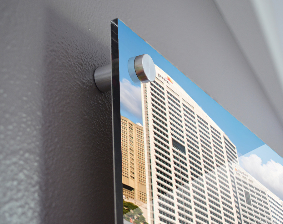Printed to the edge - Ready to hang - provided with 4 premium polished aluminum stand off ( wall screws and mounting hardware provided )
