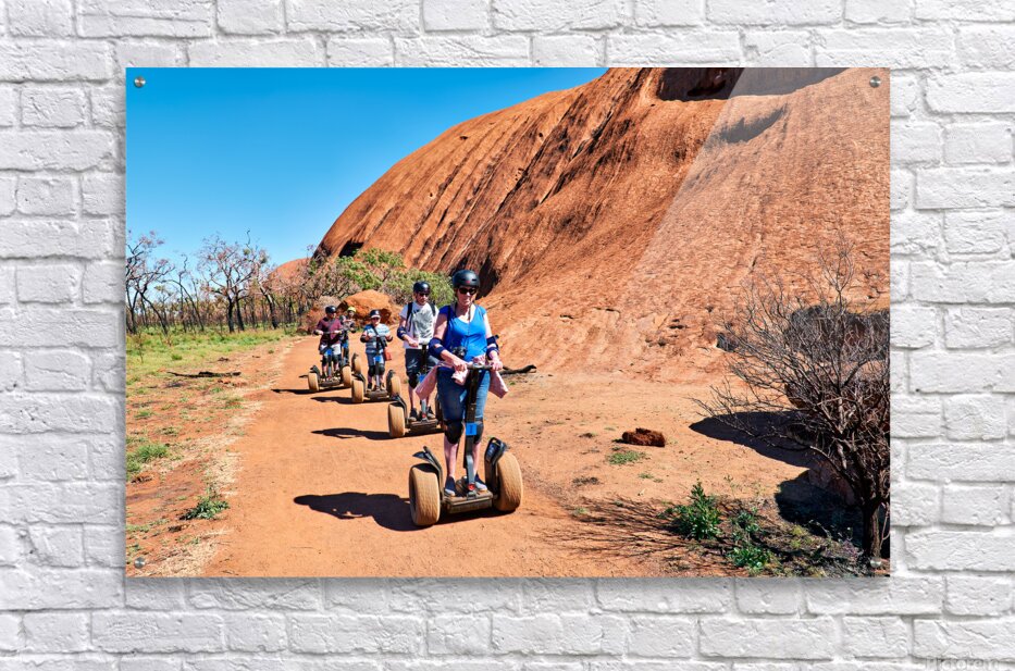 Get this artwork "Tourists ride Segways near Uluru in Australia." in a framed print.