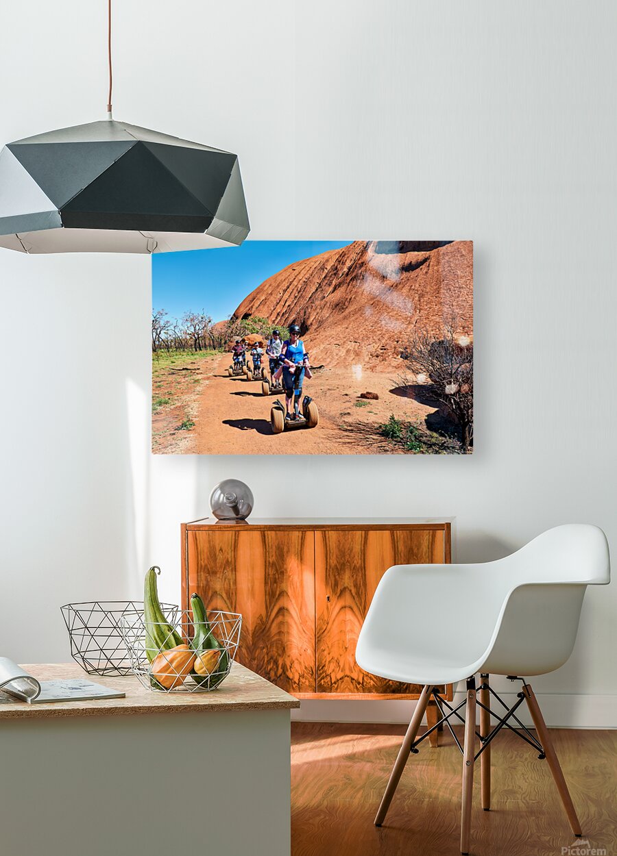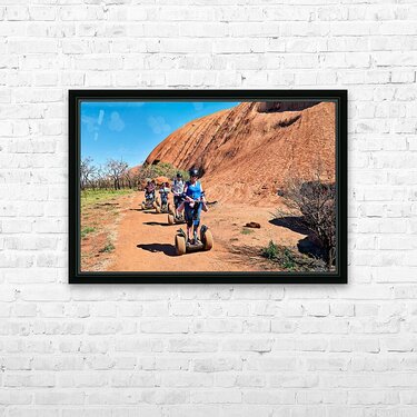 Tourists ride Segways near Uluru in Australia. Picture Frame Printing