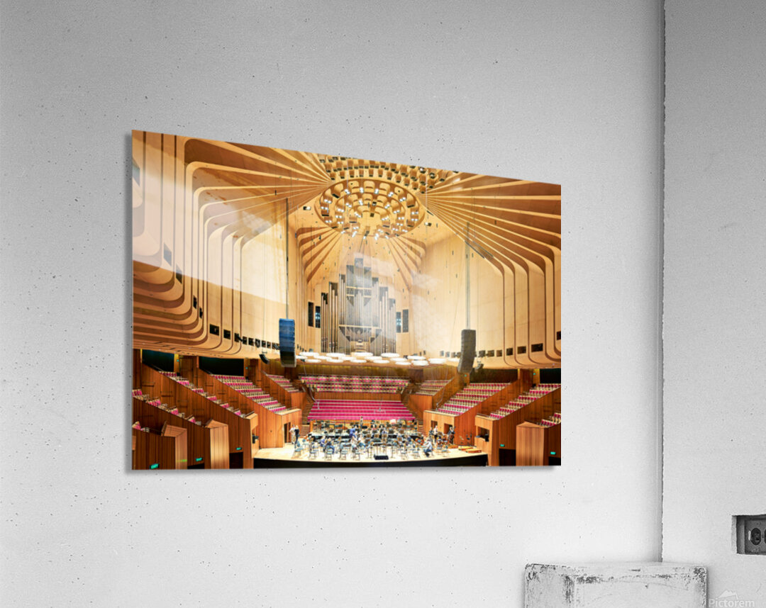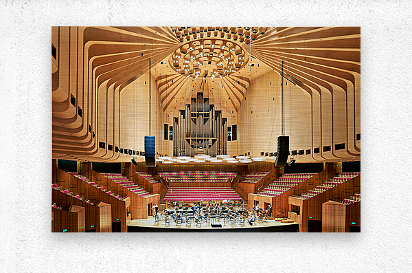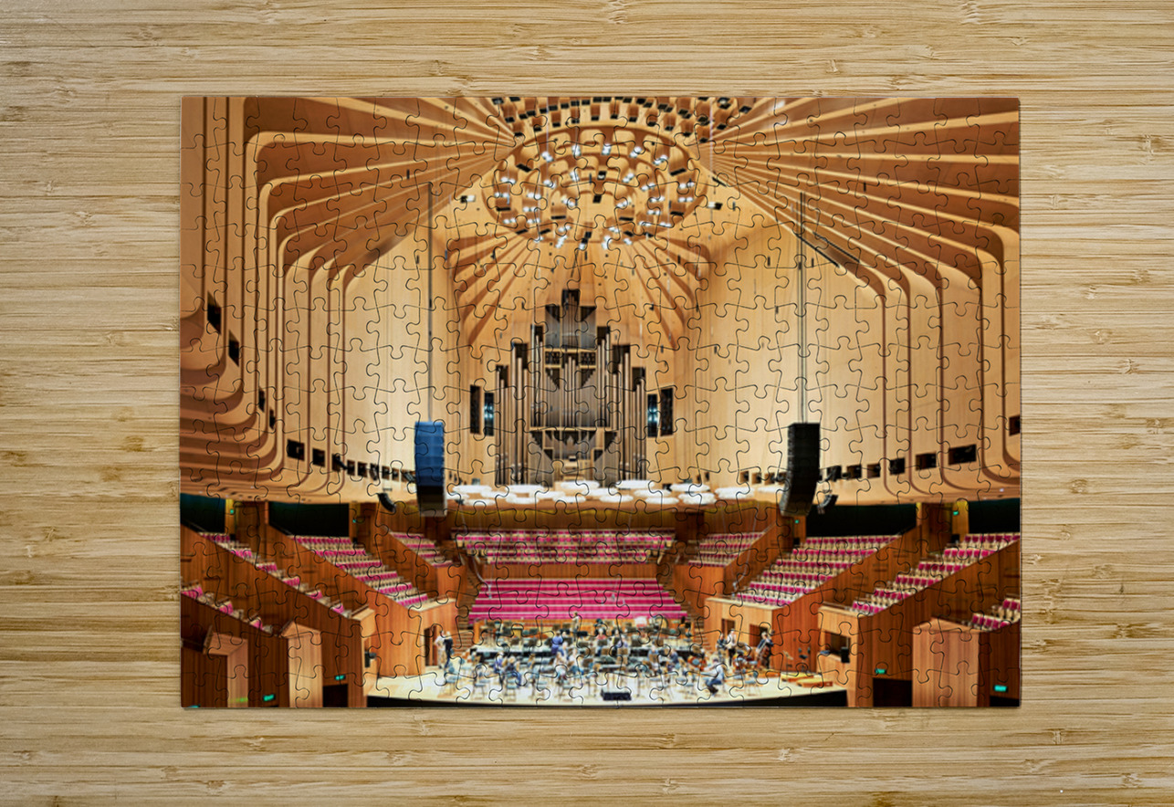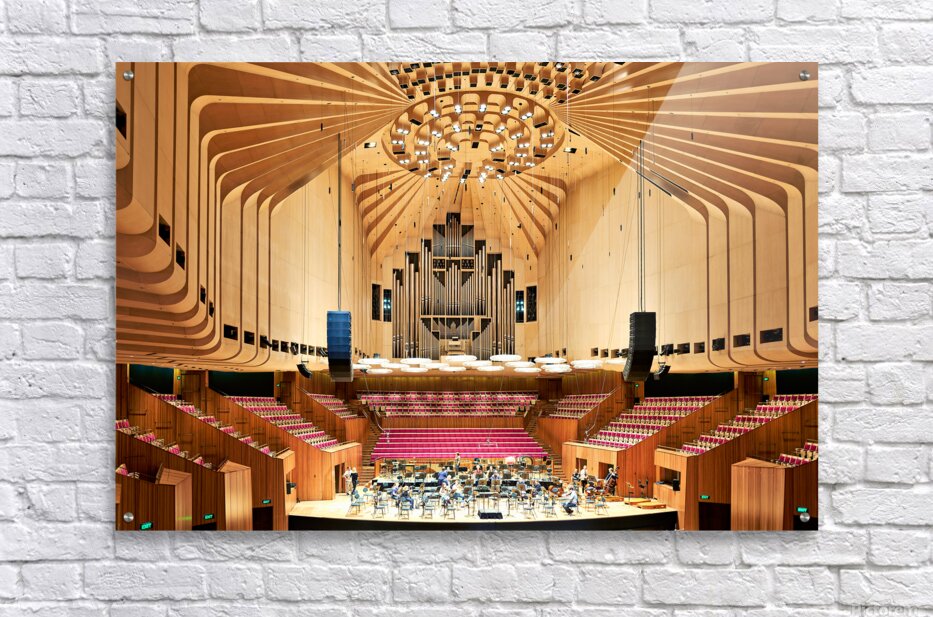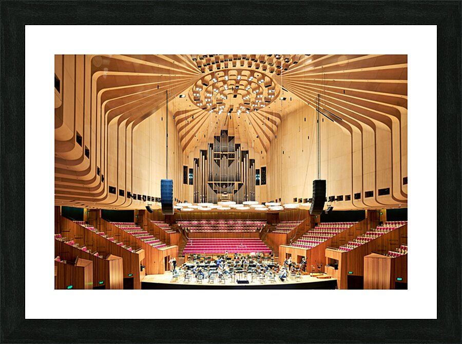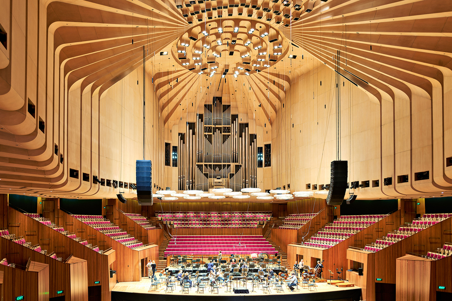 An orchestra rehearses in the concert hall of the Sydney Opera House Australia preparing for a performance.