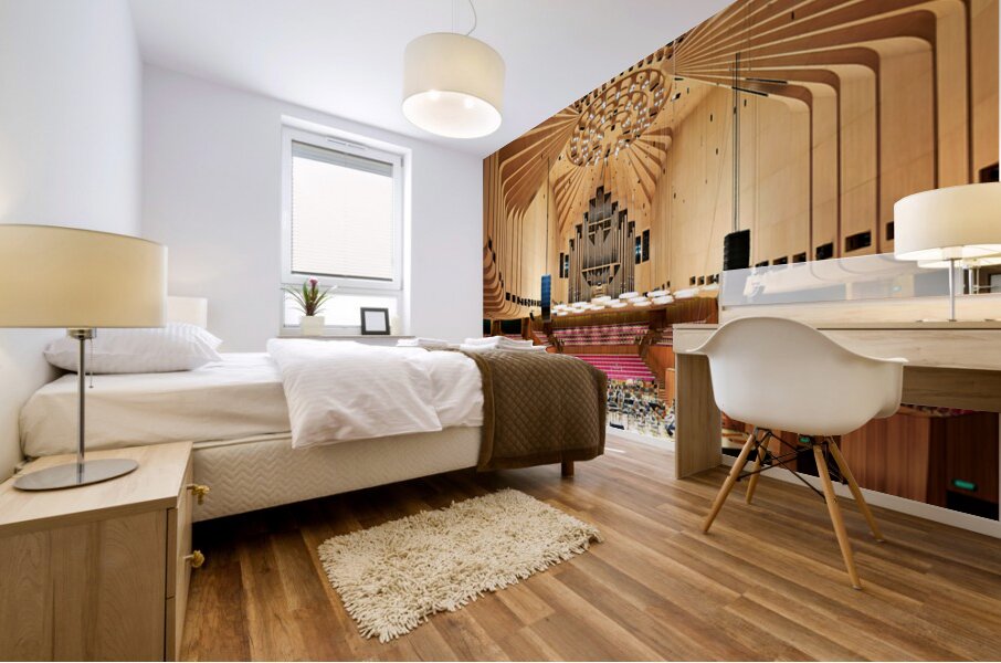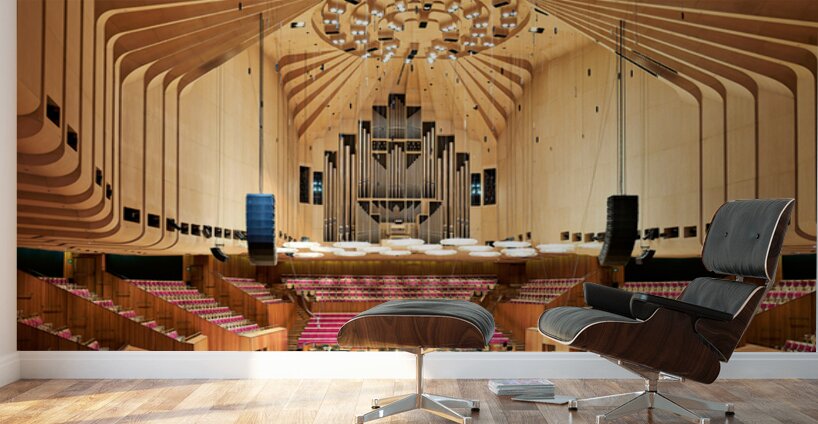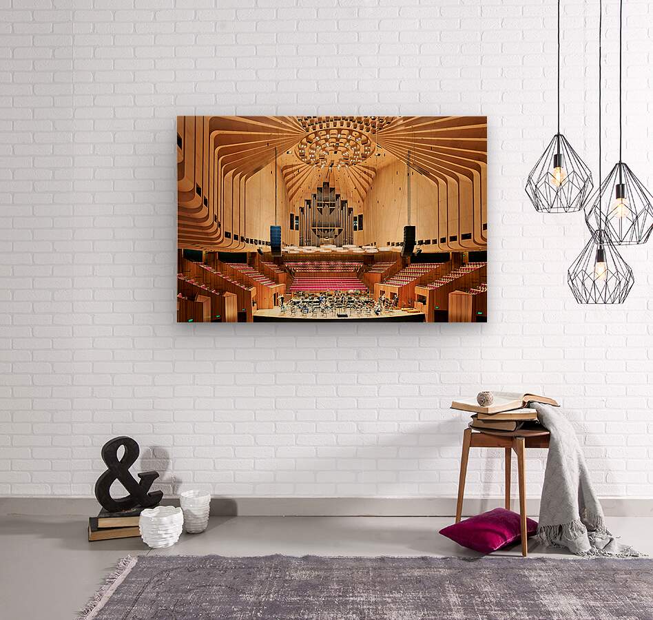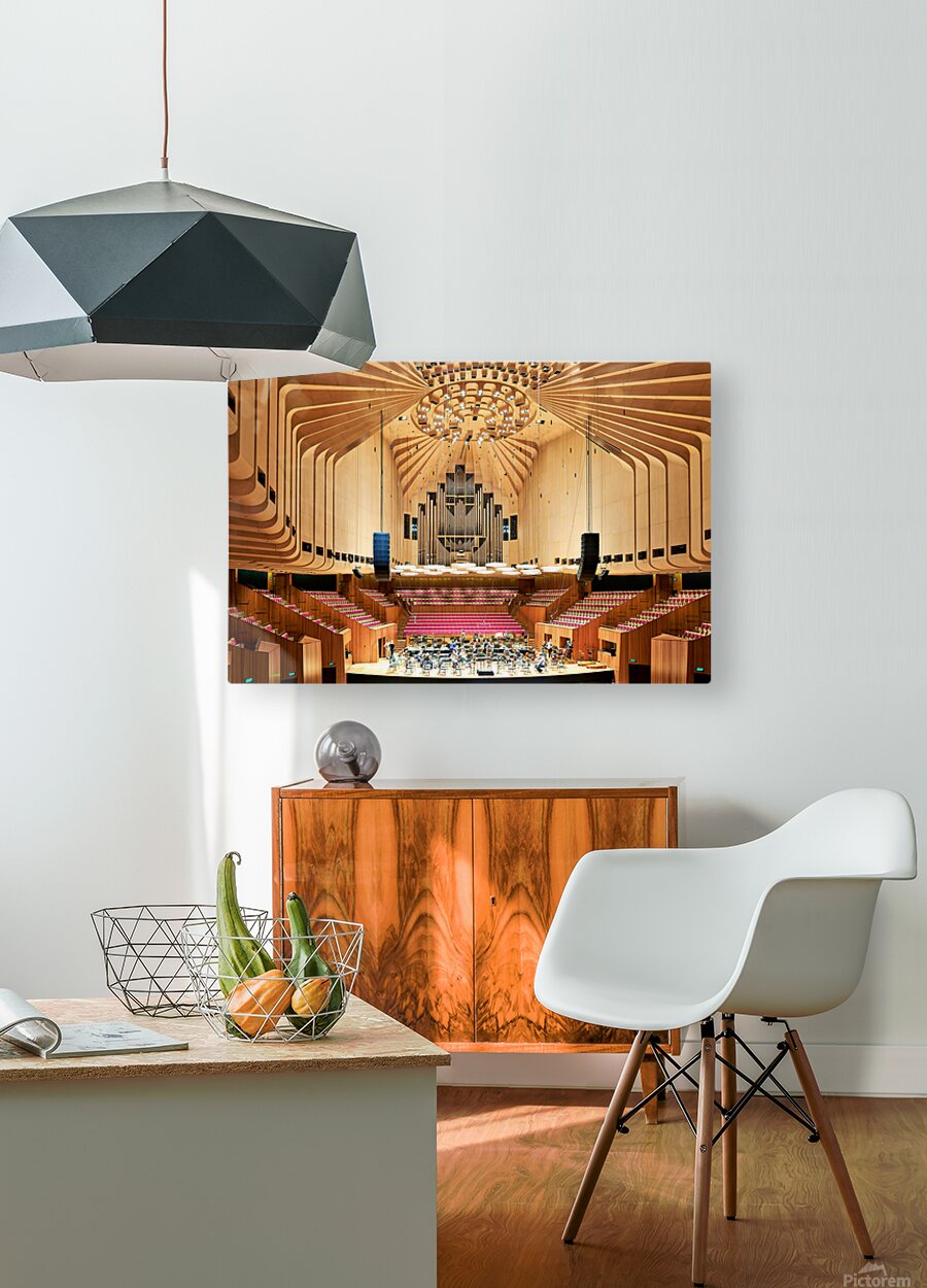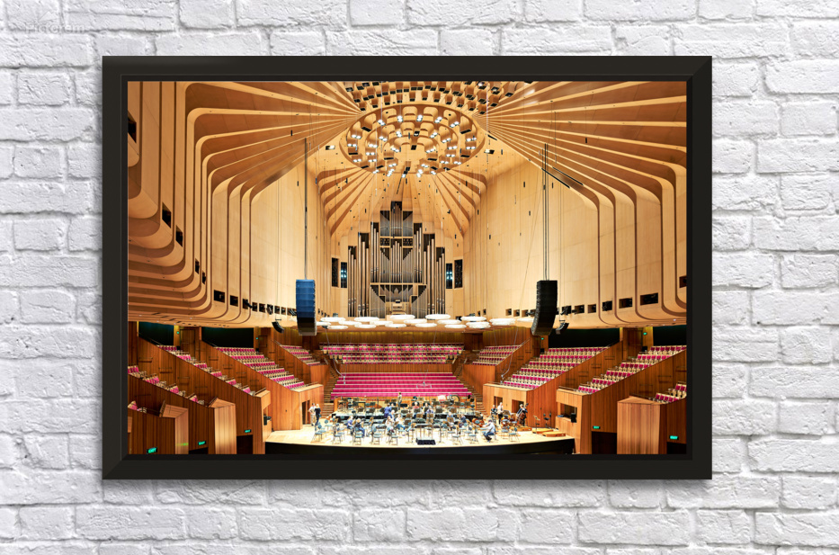 An orchestra rehearses in the concert hall of the Sydney Opera House Australia preparing for a performance.