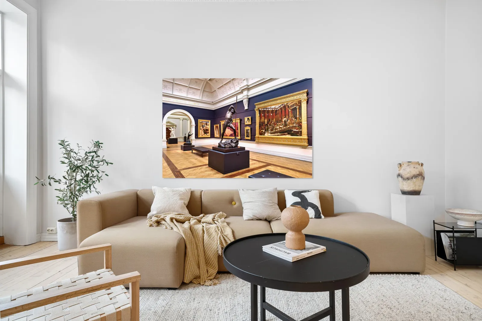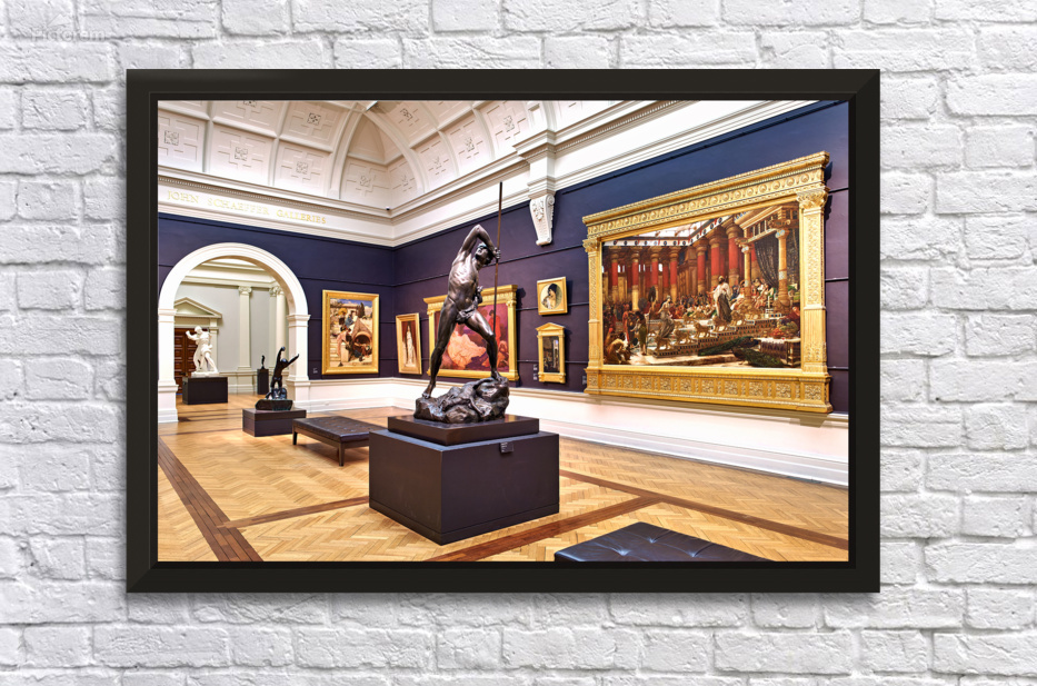 "Sculptures and paintings displayed in Art Gallery of New South W" in a framed print.