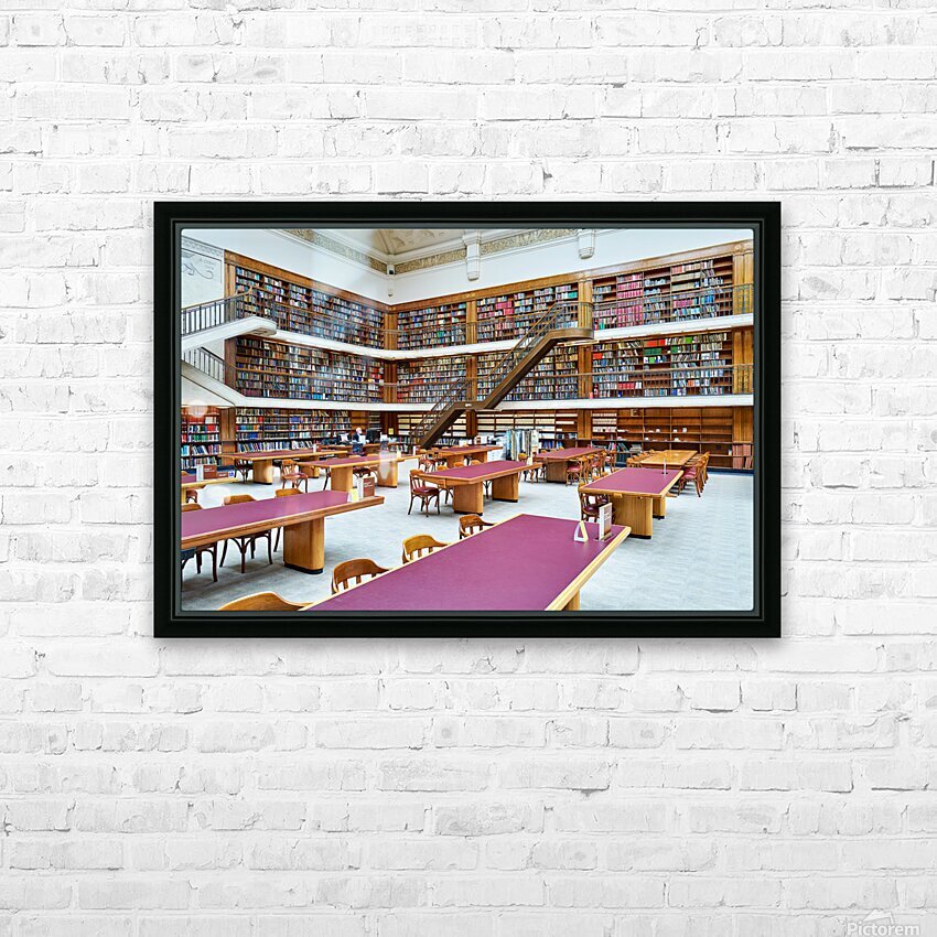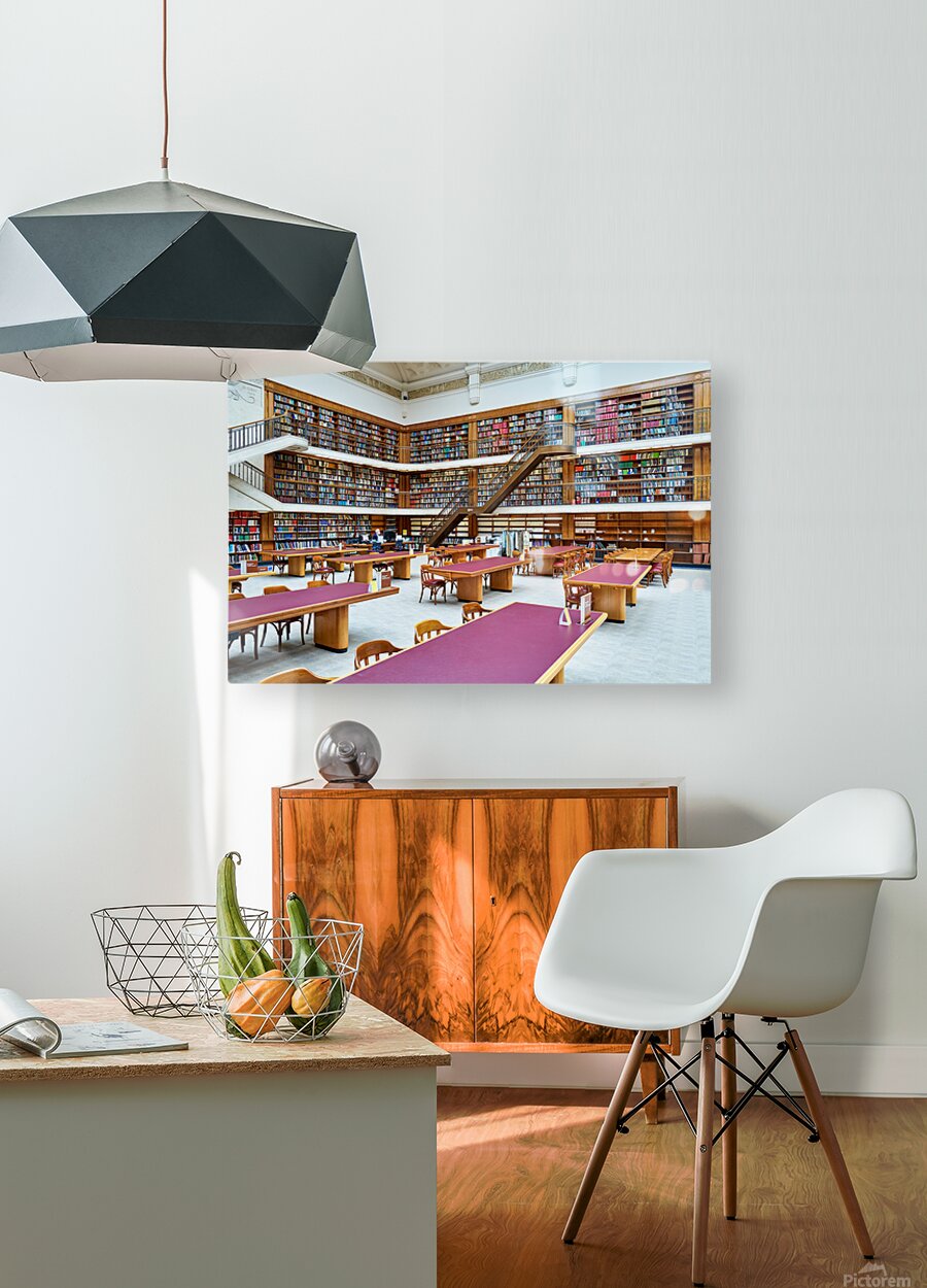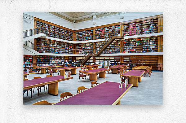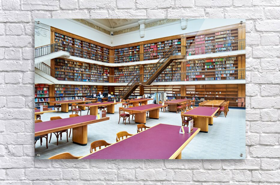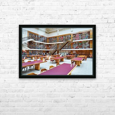 ABOUT THIS ARTWORK: GRAND LIBRARY IN SYDNEY WITH TALL BOOKSHELVES AND STUDY AREAS
