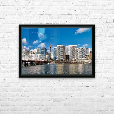 Sydney Harbour skyline with bridge and boats. Picture Frame Printing