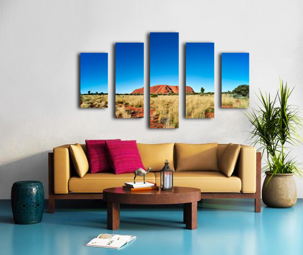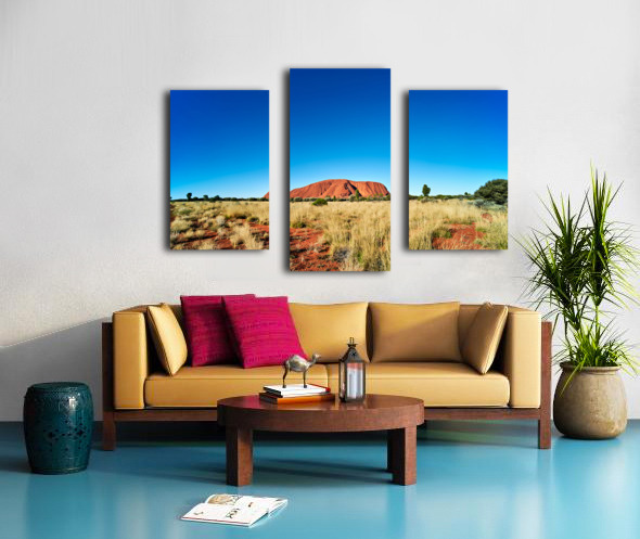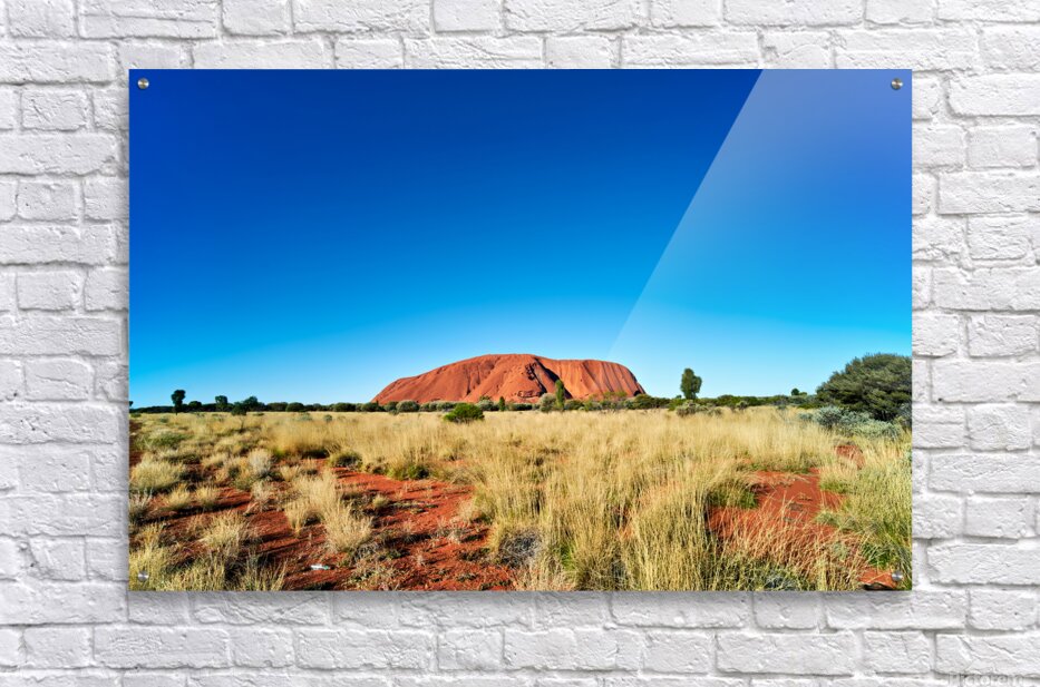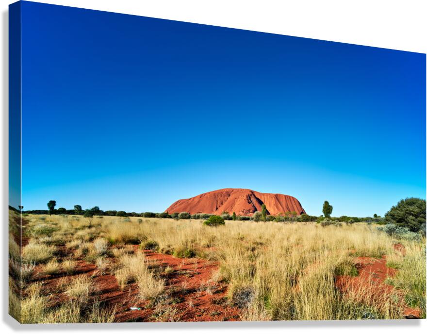 Get this artwork "Uluru Australias iconic sandstone monolith under a clear blue" in a framed print.