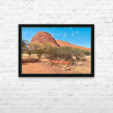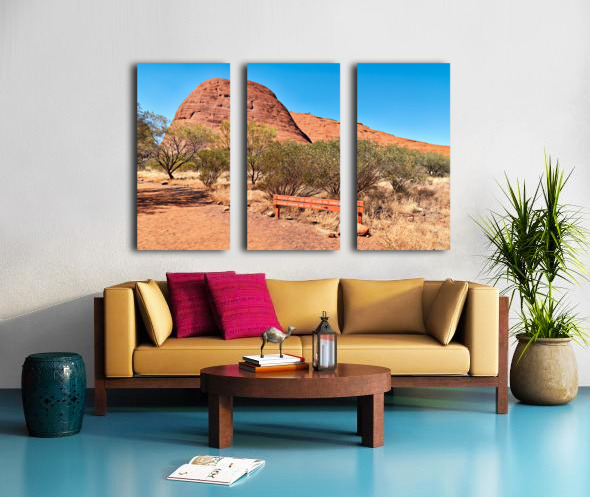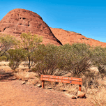 A sign in the Australian outback reads SACRED AREA - DO NOT CLIMB ON DOMES. PLEASE REMAIN ON THE TRACK near the iconic Kata Tjuta rock formations.