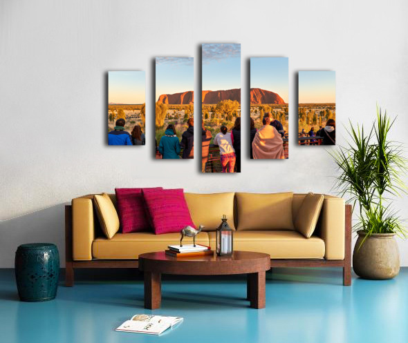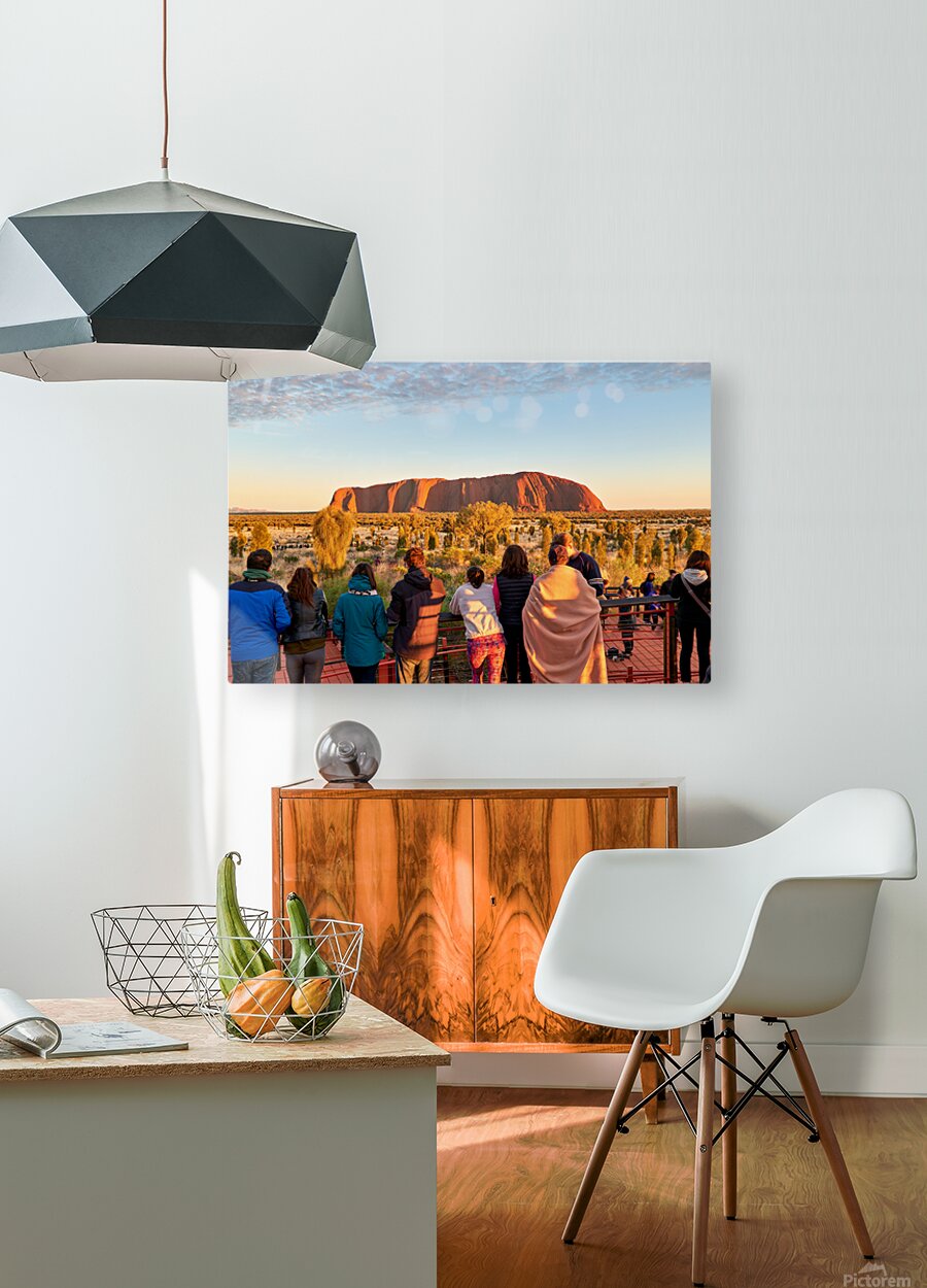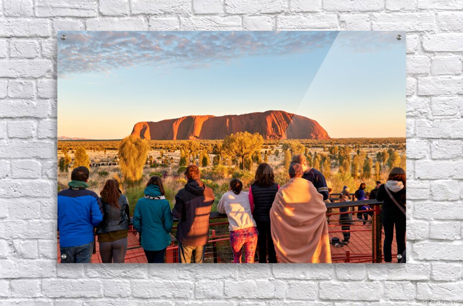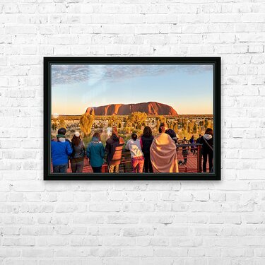 Tourists watch Uluru glow at sunrise. Frame print