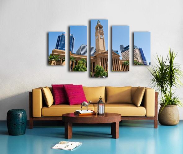 Brisbane City Hall with modern buildings and palm trees. Frame print