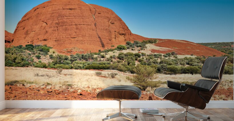 ABOUT THIS ARTWORK: VAST RED ROCK FORMATION UNDER A CLEAR BLUE SKY.
