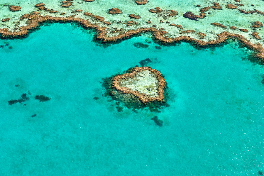Heart Reef Great Barrier Reef Australia. A natural coral formation shaped like a heart a popular tourist destination for aerial tours.