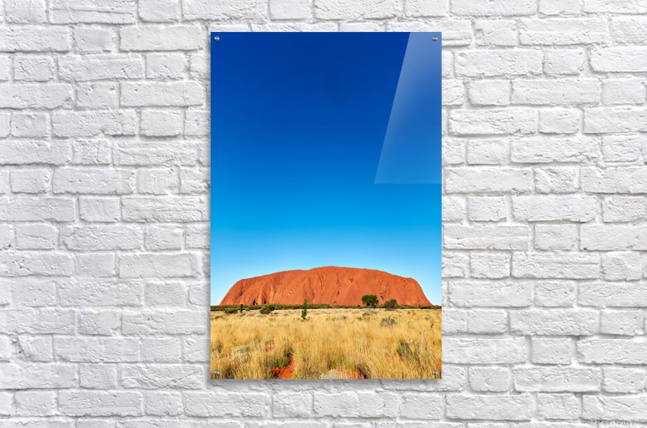 Get this artwork "Uluru monolith under a clear blue sky." in a framed print.