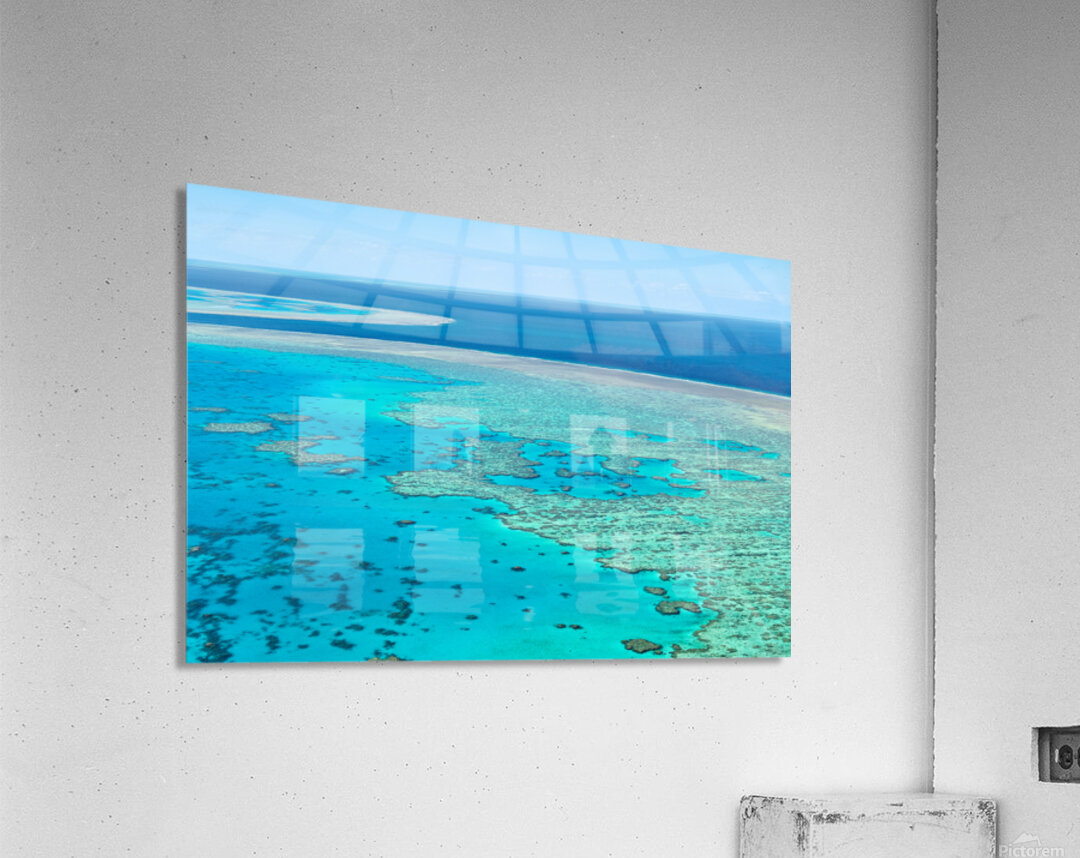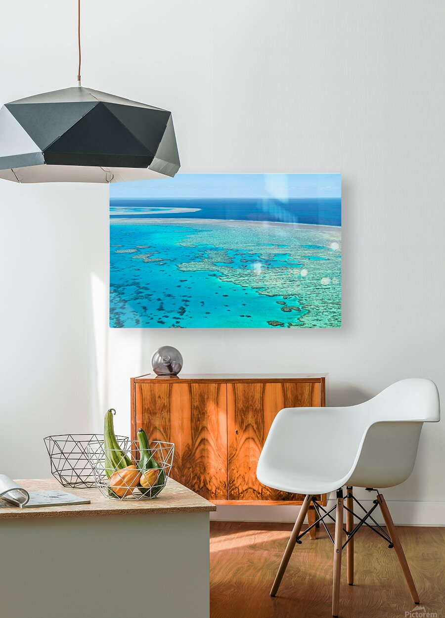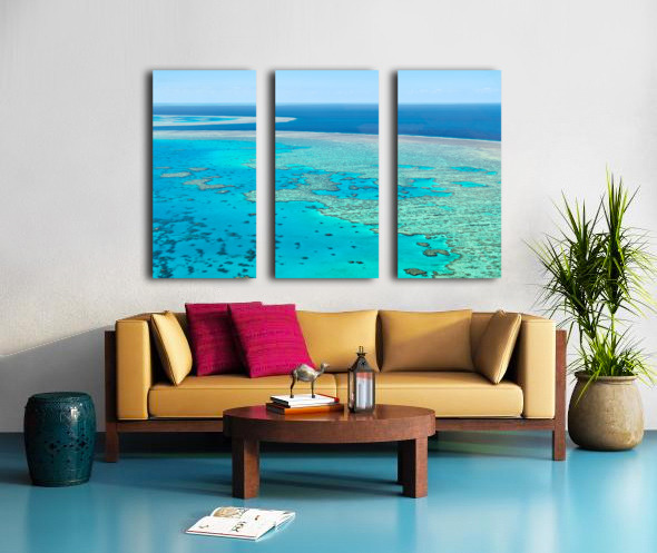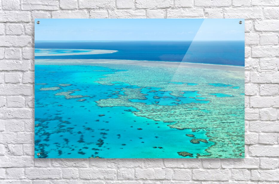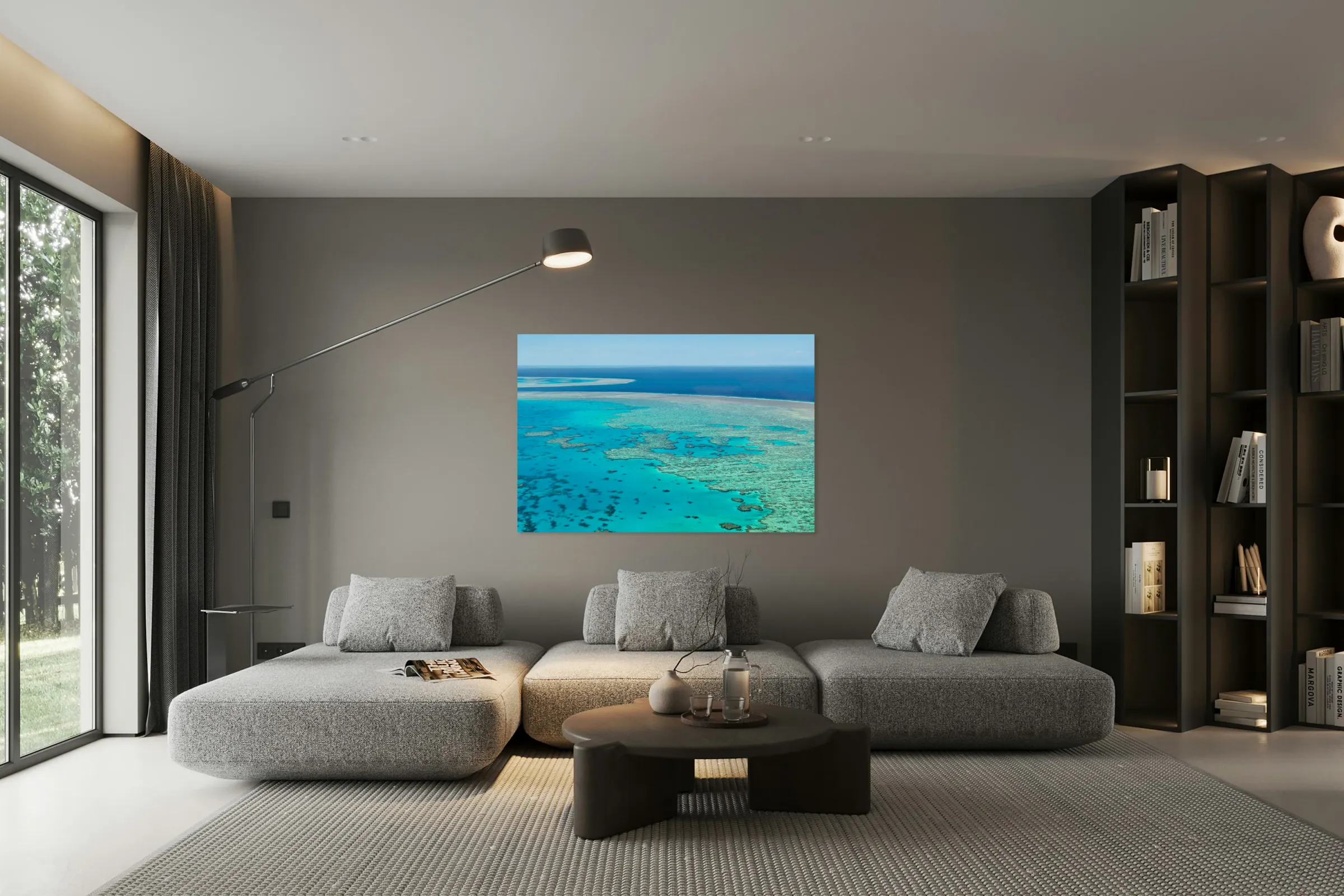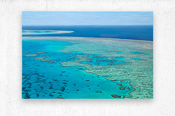 ABOUT THIS ARTWORK: AERIAL VIEW OF THE GREAT BARRIER REEFS TURQUOISE WATERS.