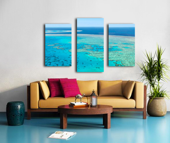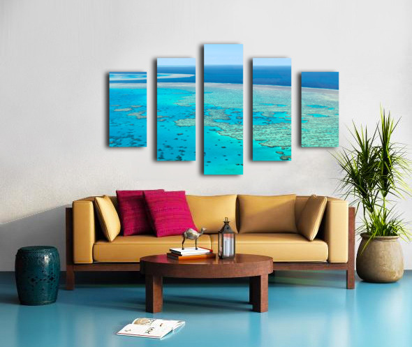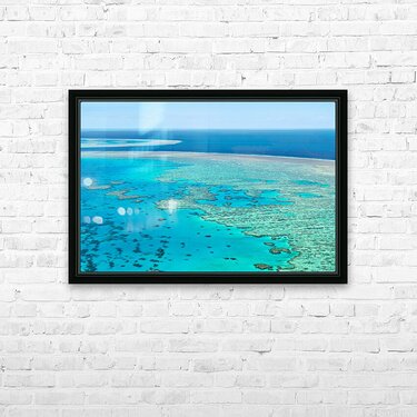 Aerial view of the Great Barrier Reefs turquoise waters. Frame print