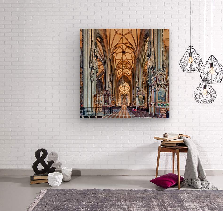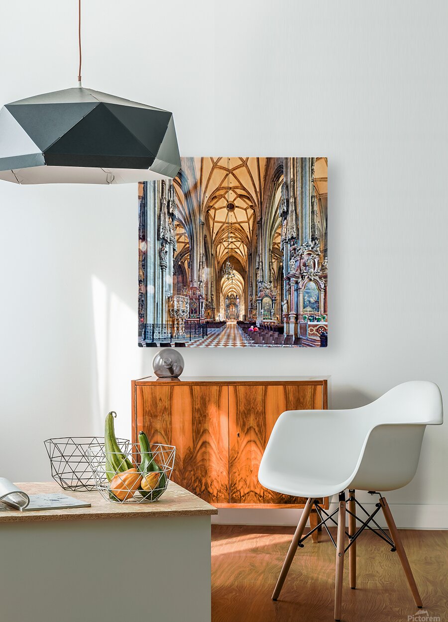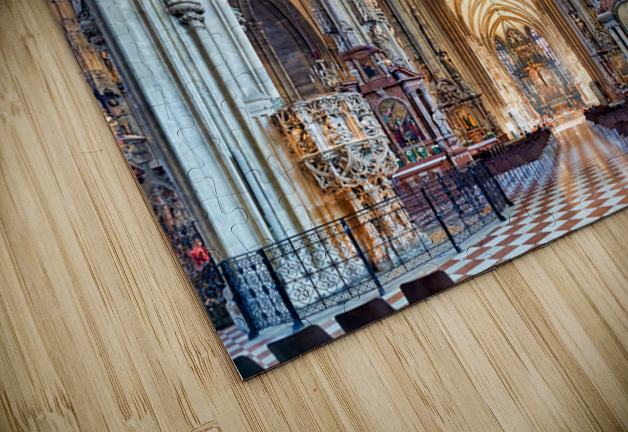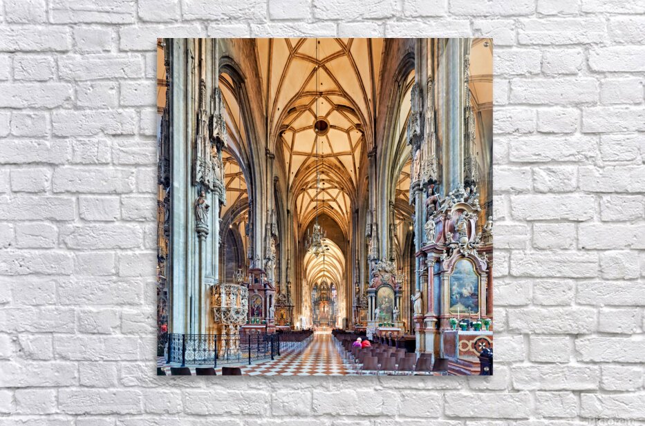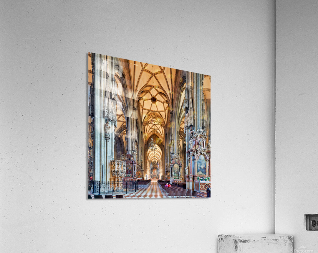 Visitors inside St. Stephens Cathedral Stephansdom in Vienna Austria admiring the stunning Gothic architecture and religious art.