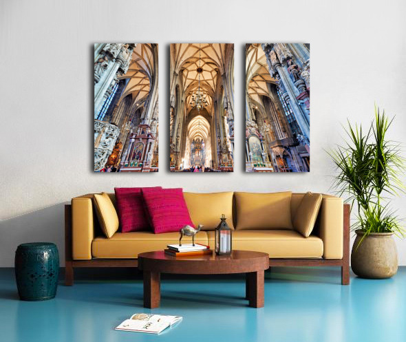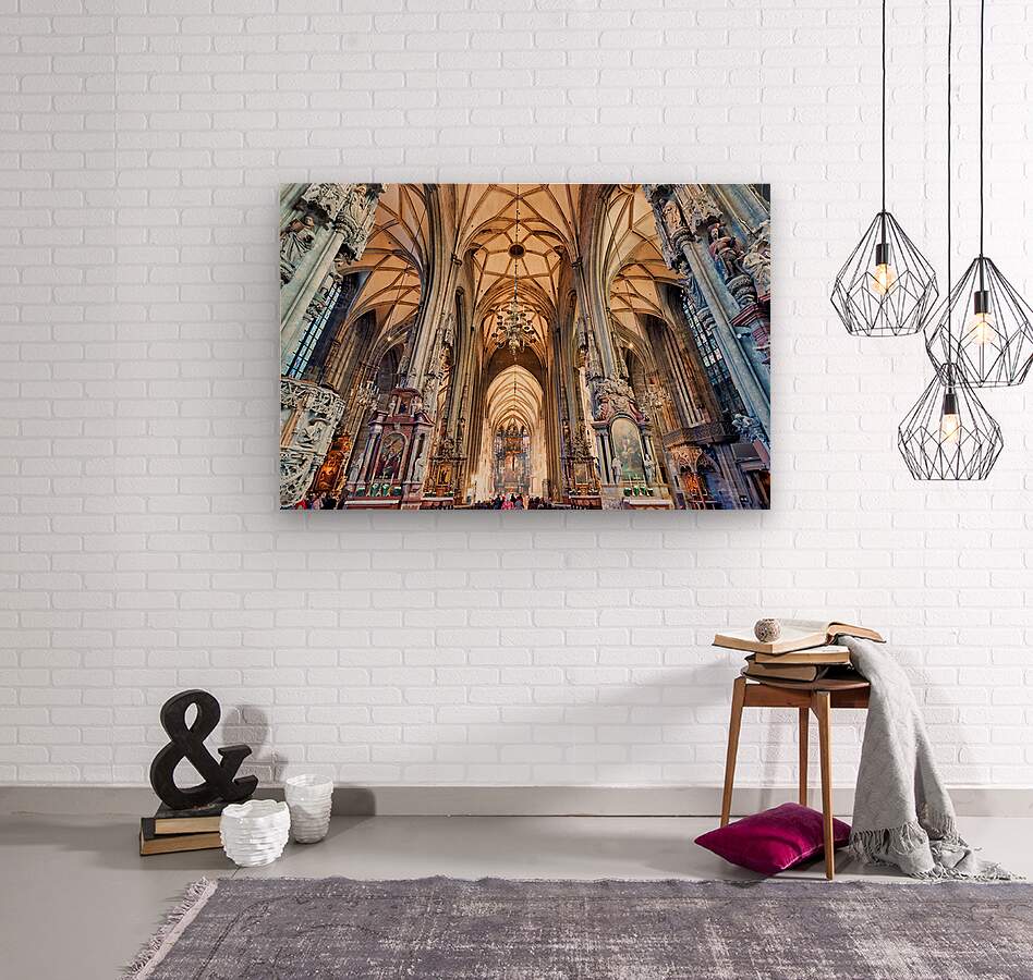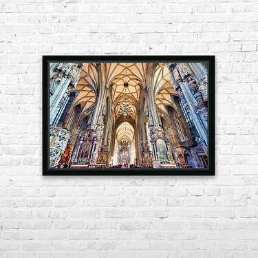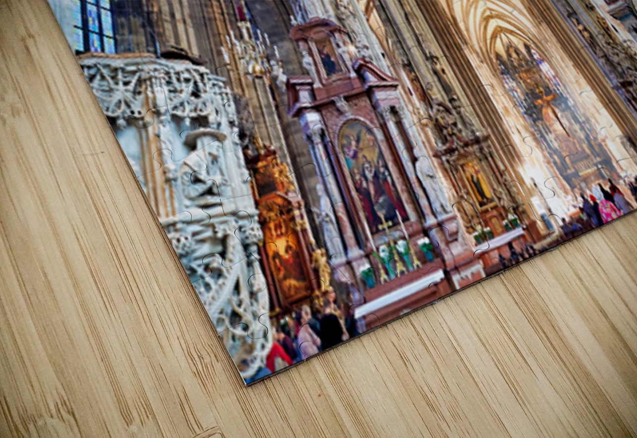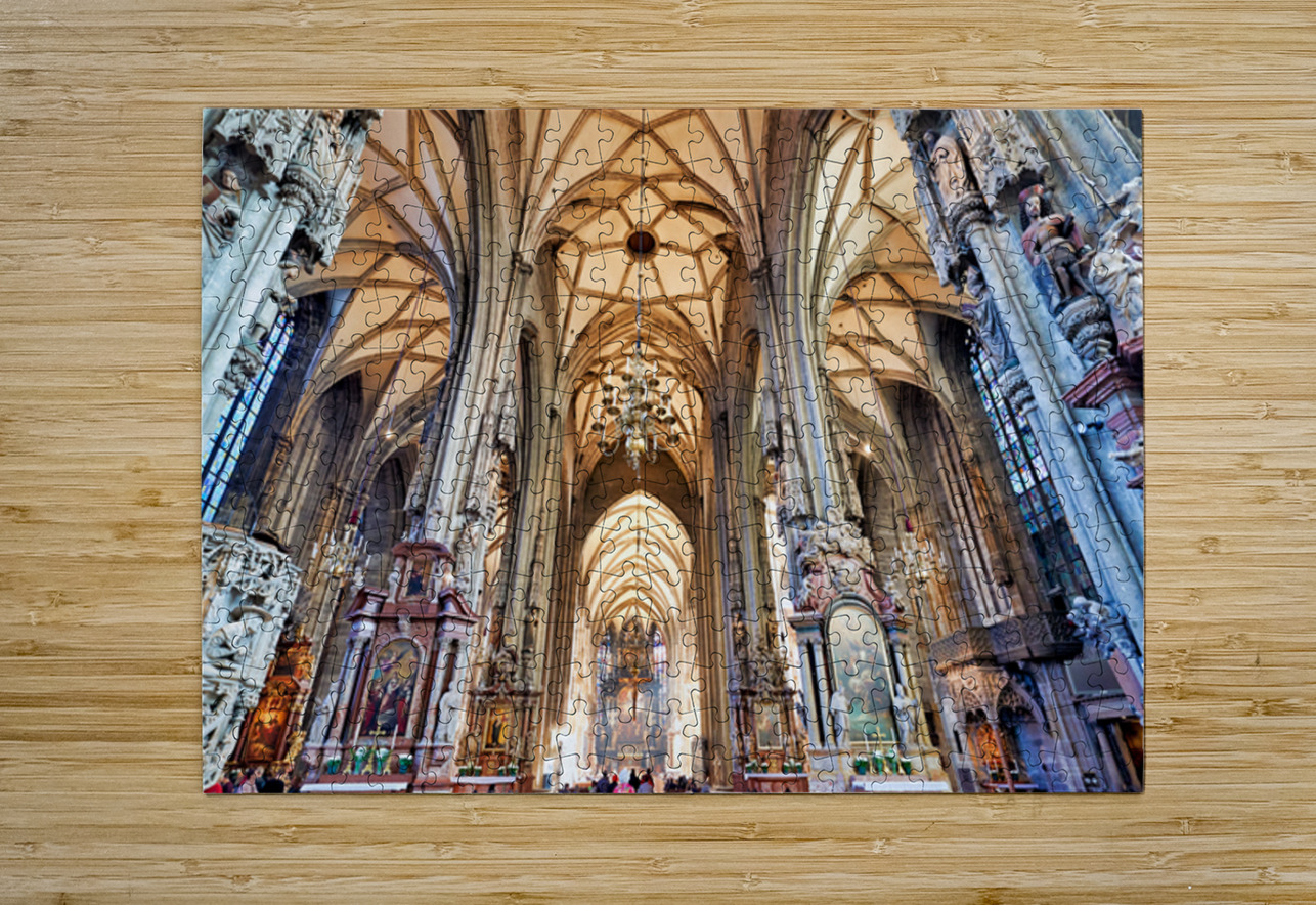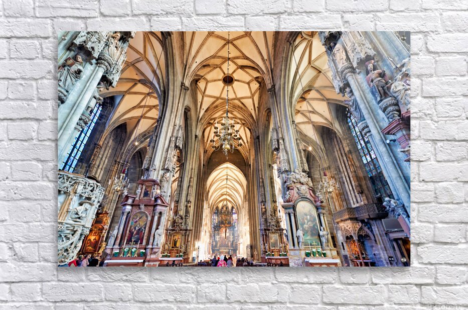 Tourists admire the stunning Gothic architecture and religious art inside St. Stephens Cathedral Stephansdom in Vienna Austria.