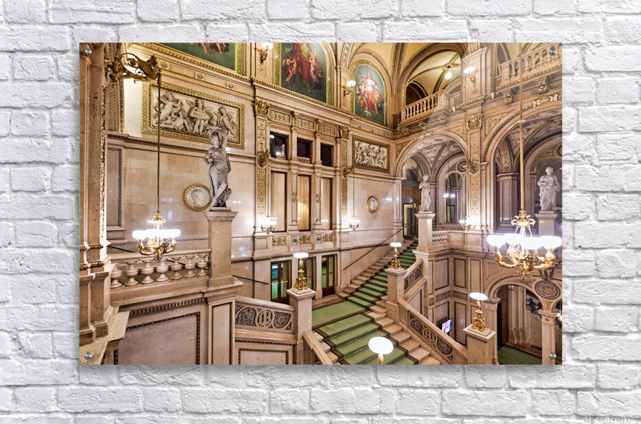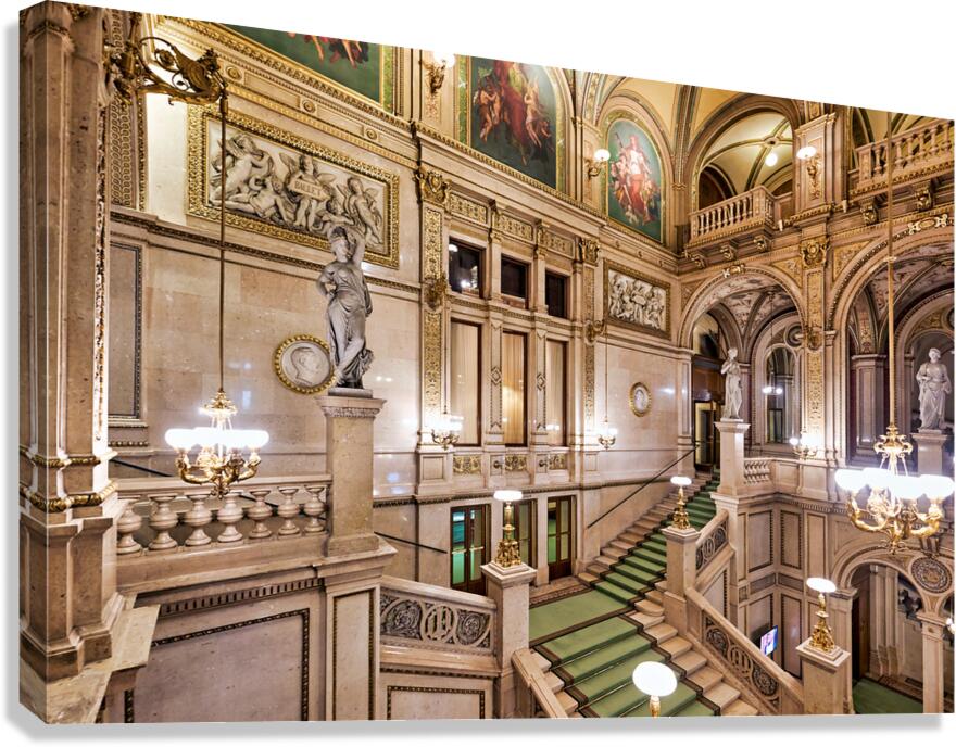 ABOUT THIS ARTWORK: VIENNA STATE OPERAS OPULENT GRAND STAIRCASE AND HALL.