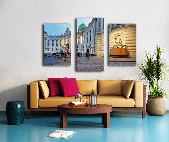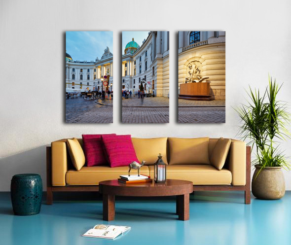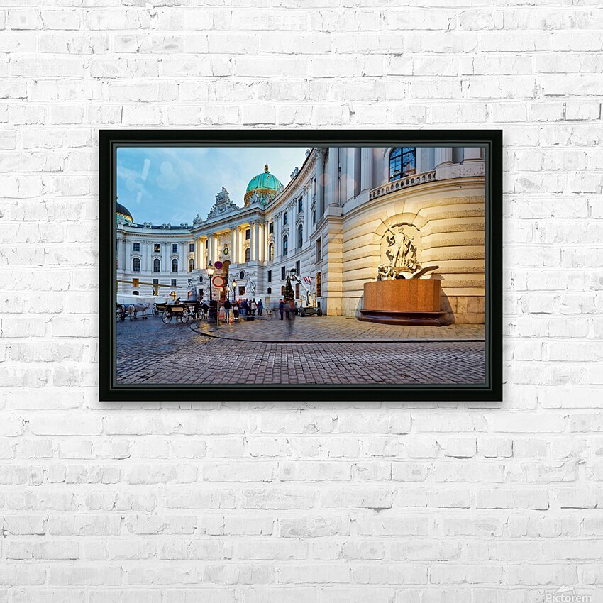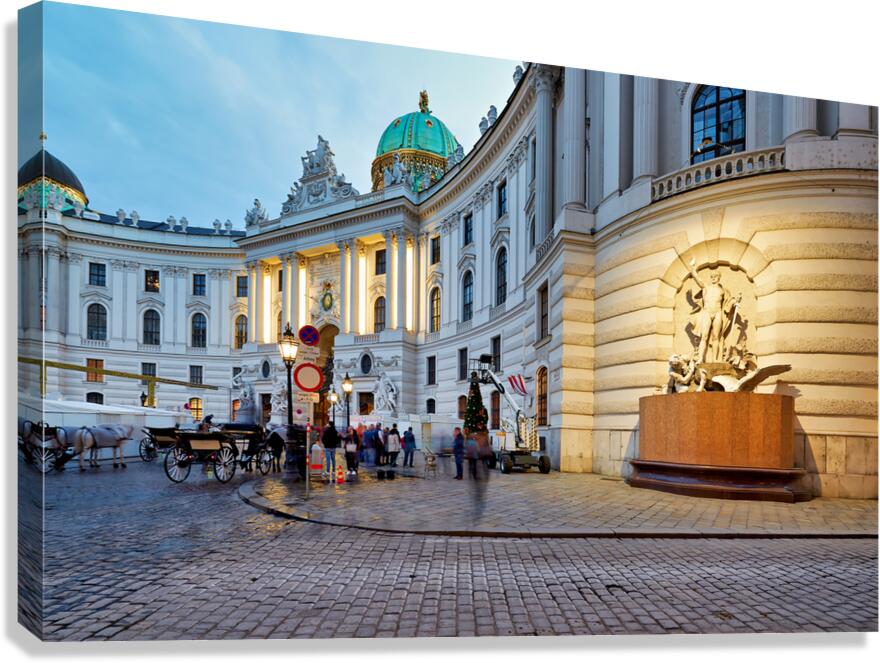 Illuminated Hofburg Palace Vienna with people and horse carria Picture Frame Printing