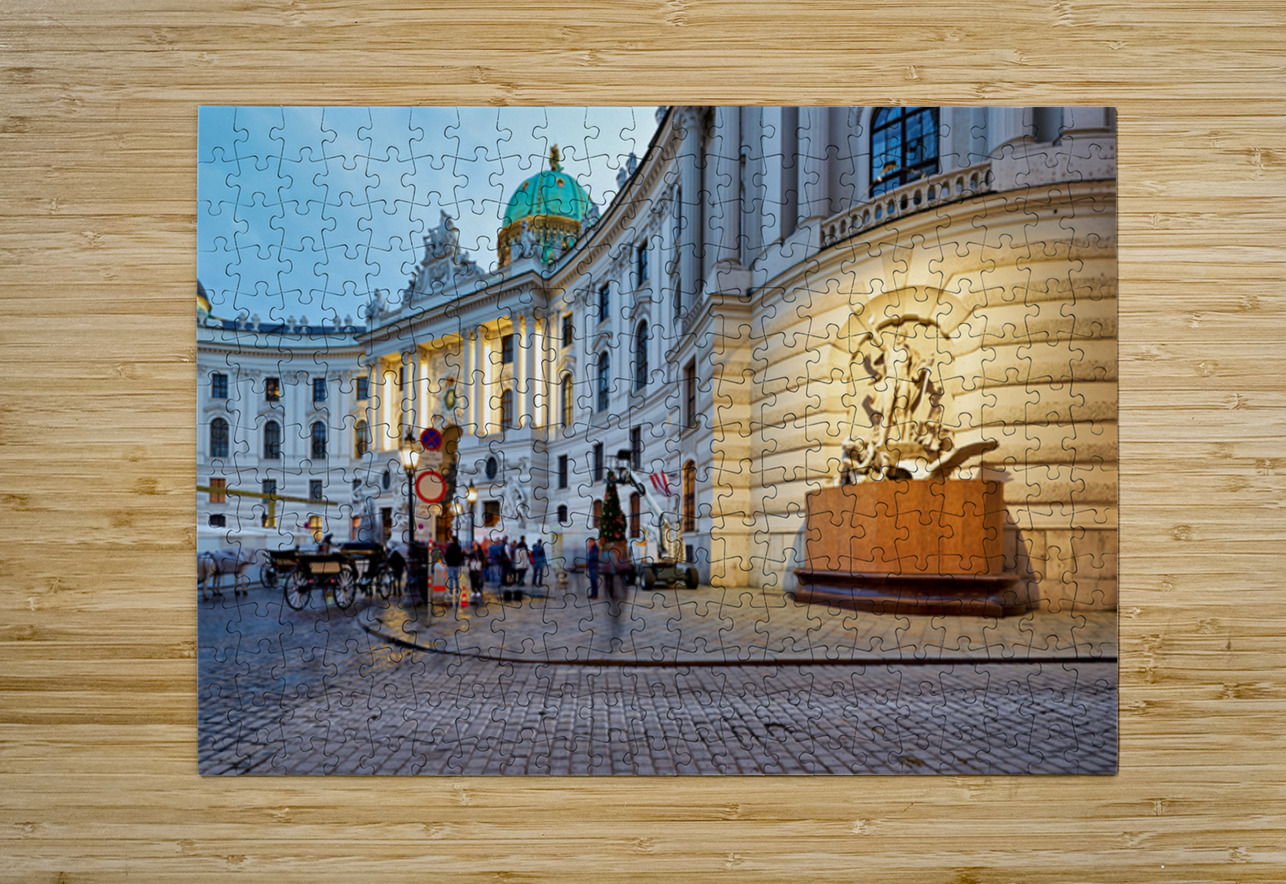 Illuminated Hofburg Palace Vienna with people and horse carria Marco Brivio Puzzle printing