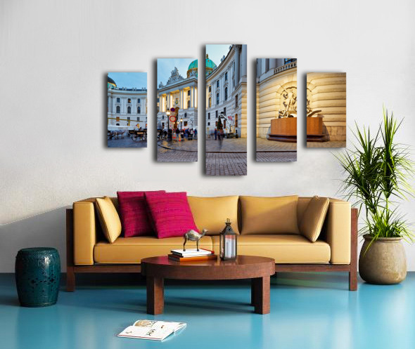 Illuminated Hofburg Palace Vienna with people and horse carria Frame print