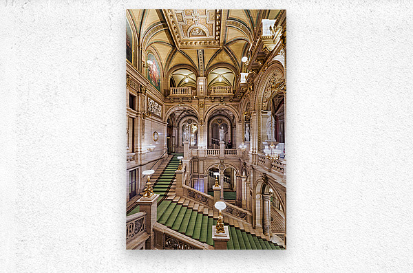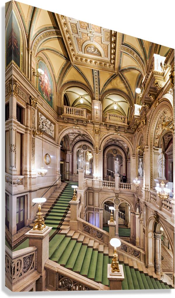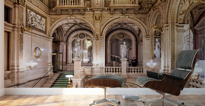 The opulent grand staircase of the Vienna State Opera in Vienna Austria showcasing its magnificent architecture and historical grandeur to visitors.