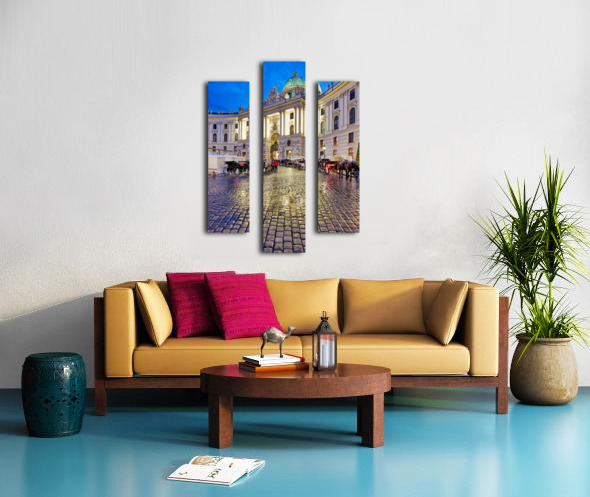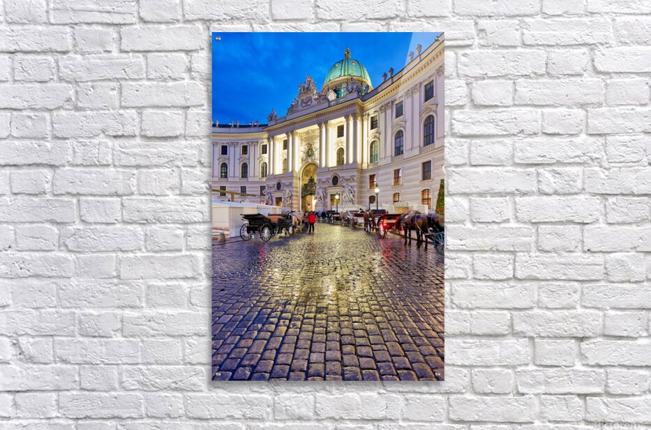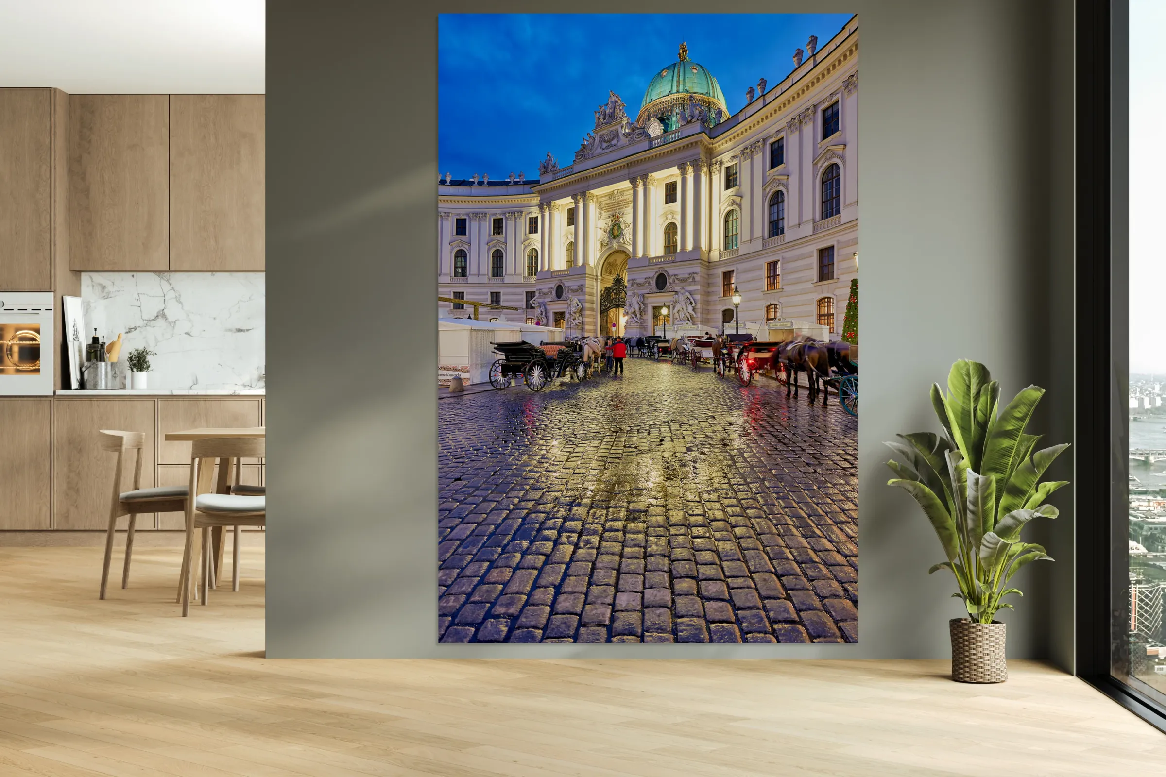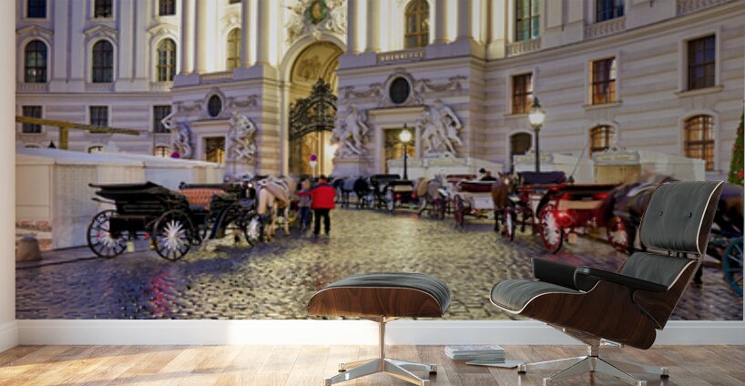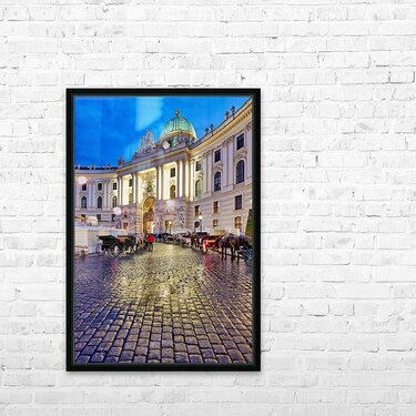Hofburg Palace Vienna at night with horse drawn carriages. Frame print