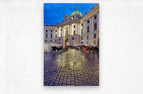 ABOUT THIS ARTWORK: HOFBURG PALACE VIENNA AT NIGHT WITH HORSE DRAWN CARRIAGES.
