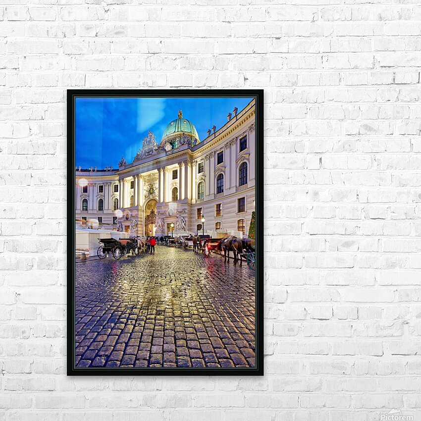Hofburg Palace Vienna at night with horse drawn carriages. Picture Frame Printing