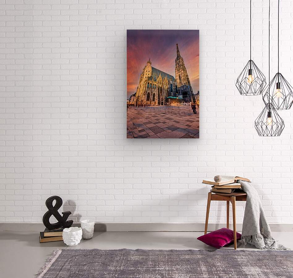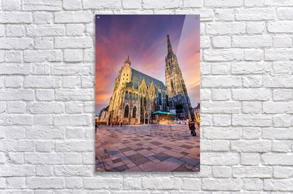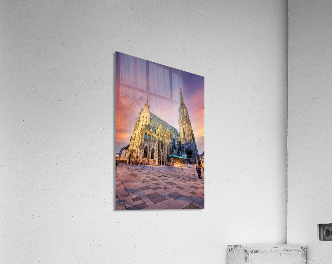 Get this artwork "St. Stephens Cathedral Vienna at vibrant sunset." in a framed print.