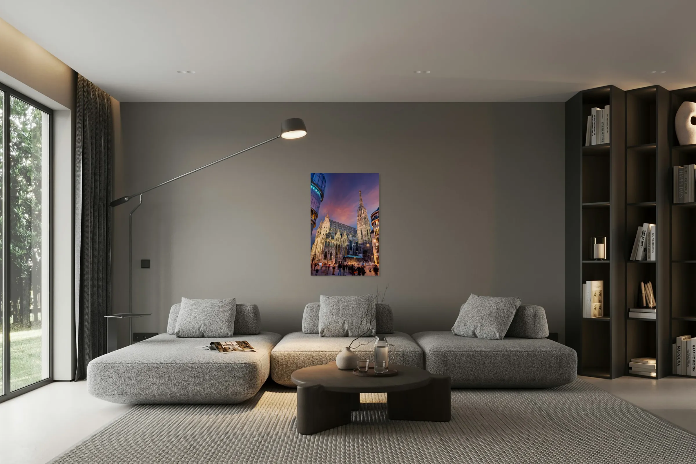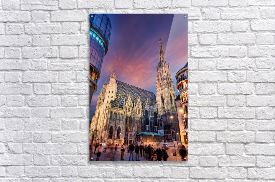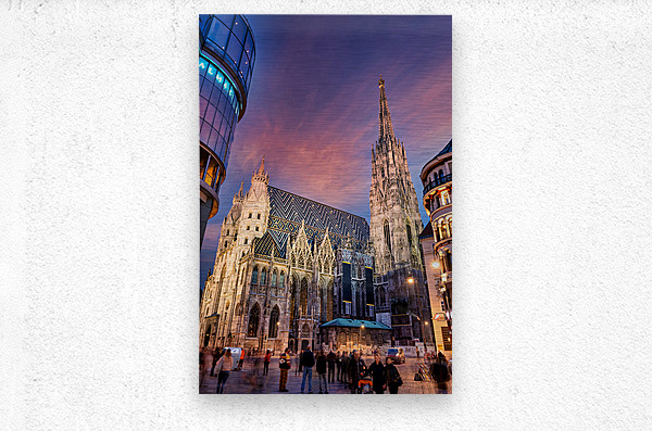 ABOUT THIS ARTWORK: ST. STEPHENS CATHEDRAL VIENNA AT TWILIGHT WITH PEOPLE.