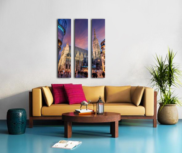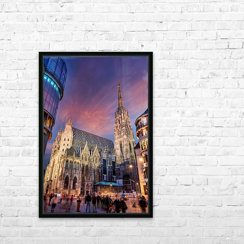 St. Stephens Cathedral Vienna at twilight with people. Frame print