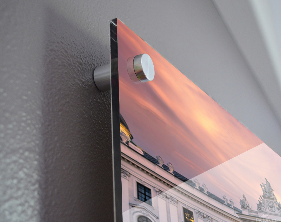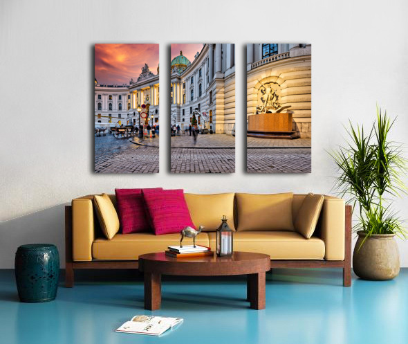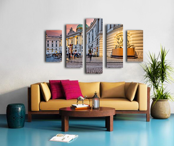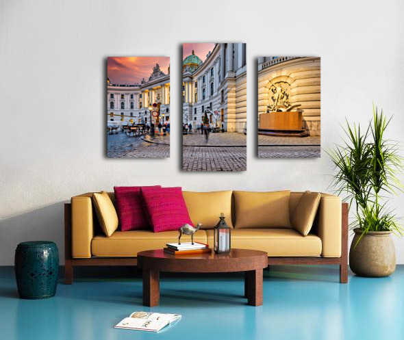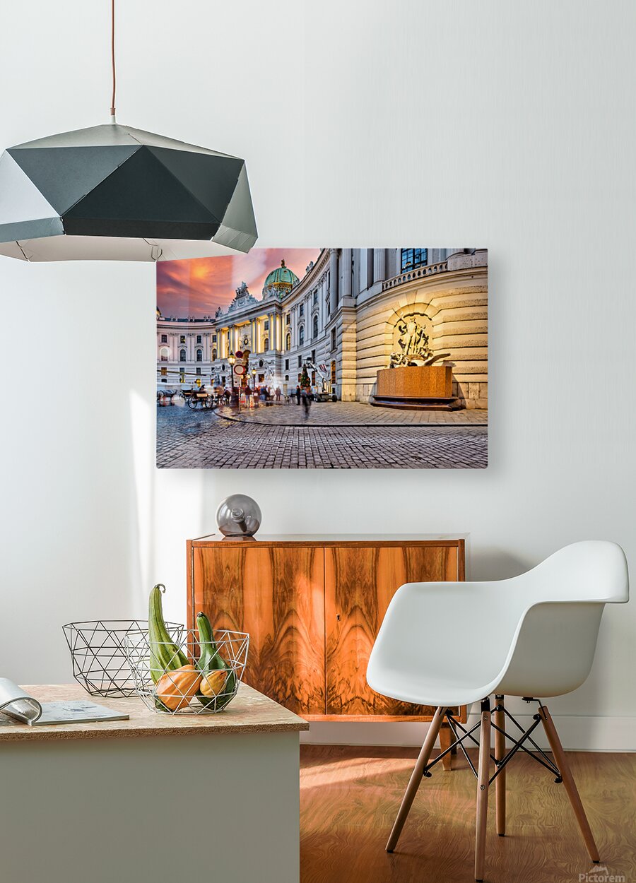 Hofburg Palace Vienna illuminated at dusk with festive street  Frame print
