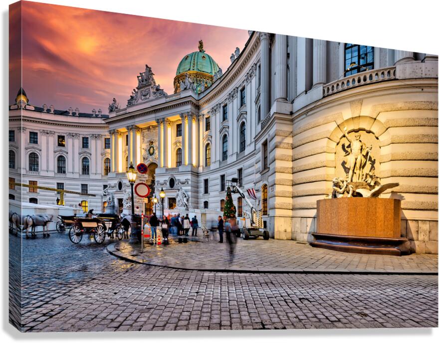 ABOUT THIS ARTWORK: HOFBURG PALACE VIENNA ILLUMINATED AT DUSK WITH FESTIVE STREET