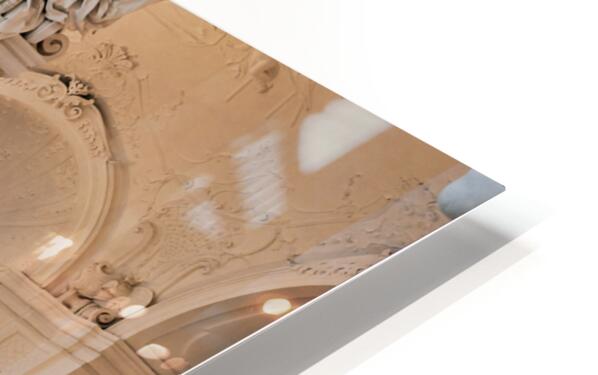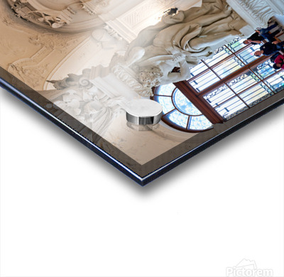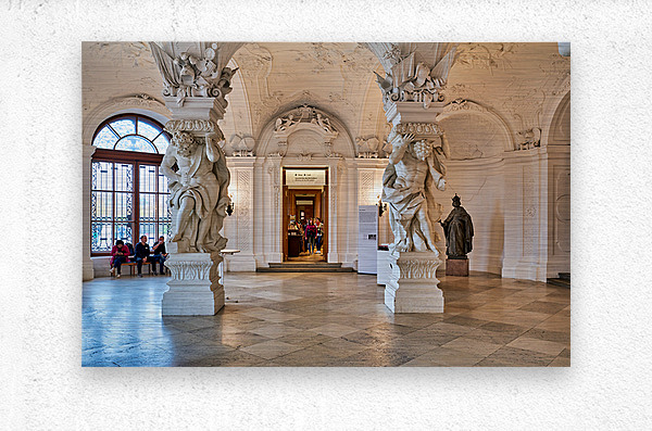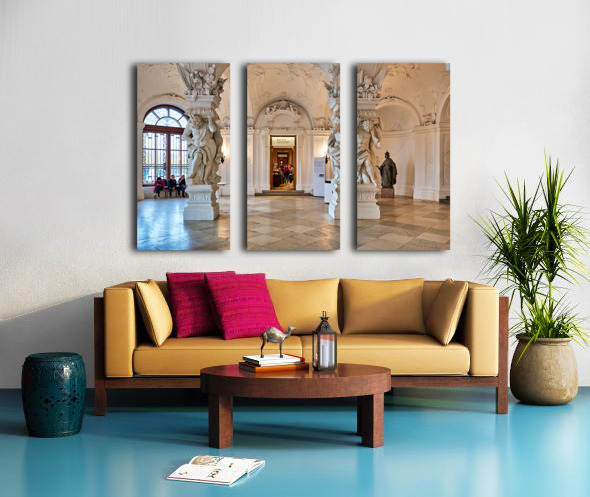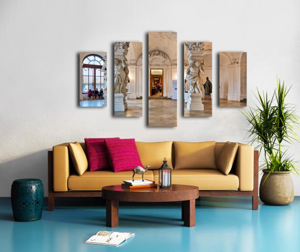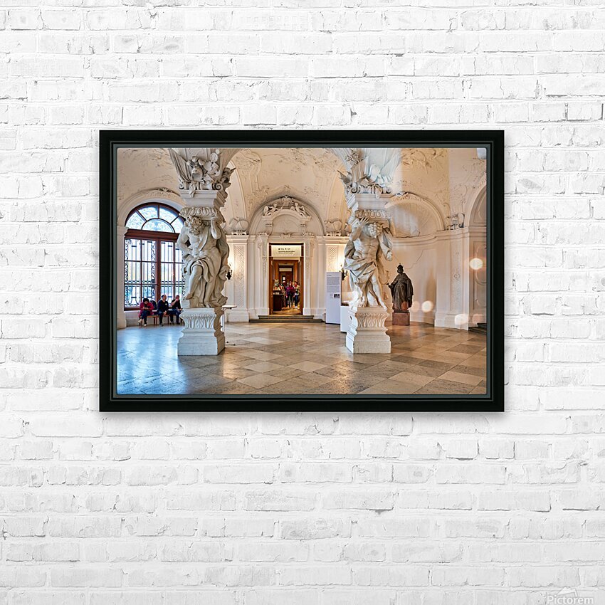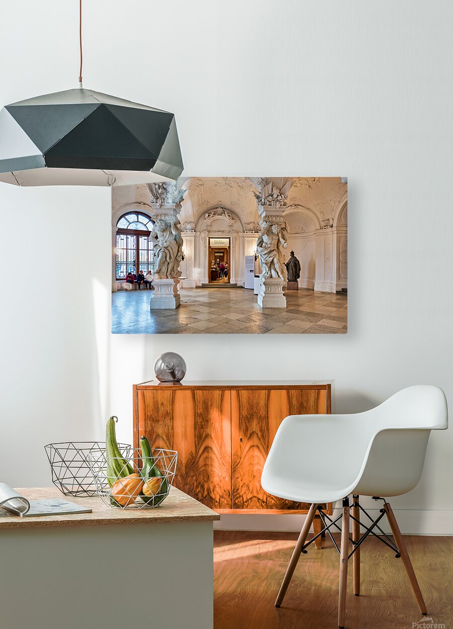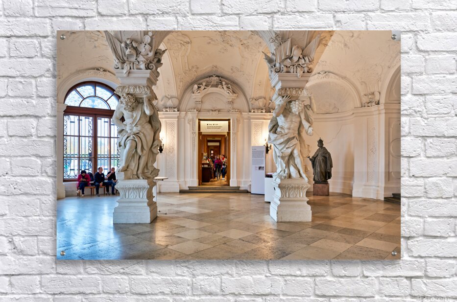 Ornate Baroque hall with sculptures and visitors. Frame print