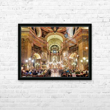 People attending a Requiem service in an ornate church. Picture Frame Printing